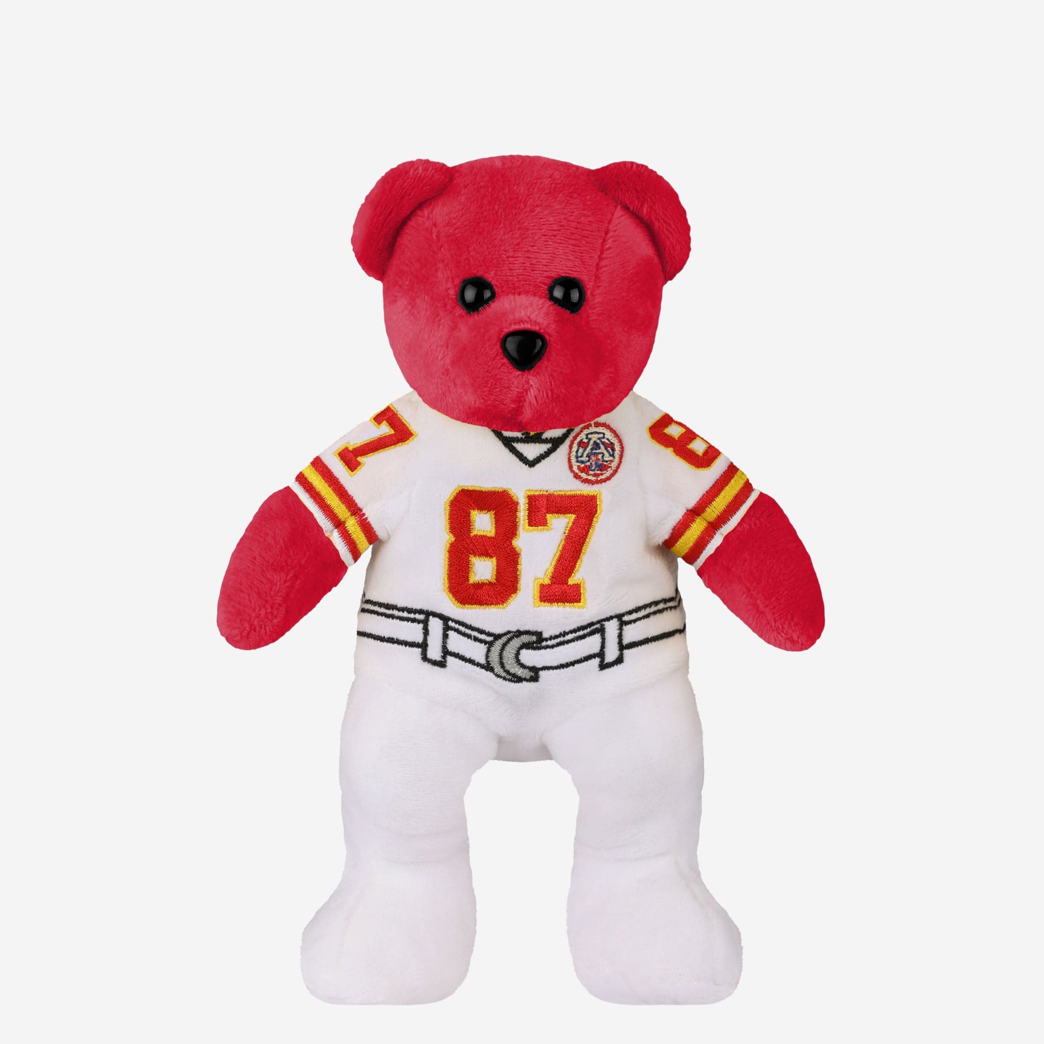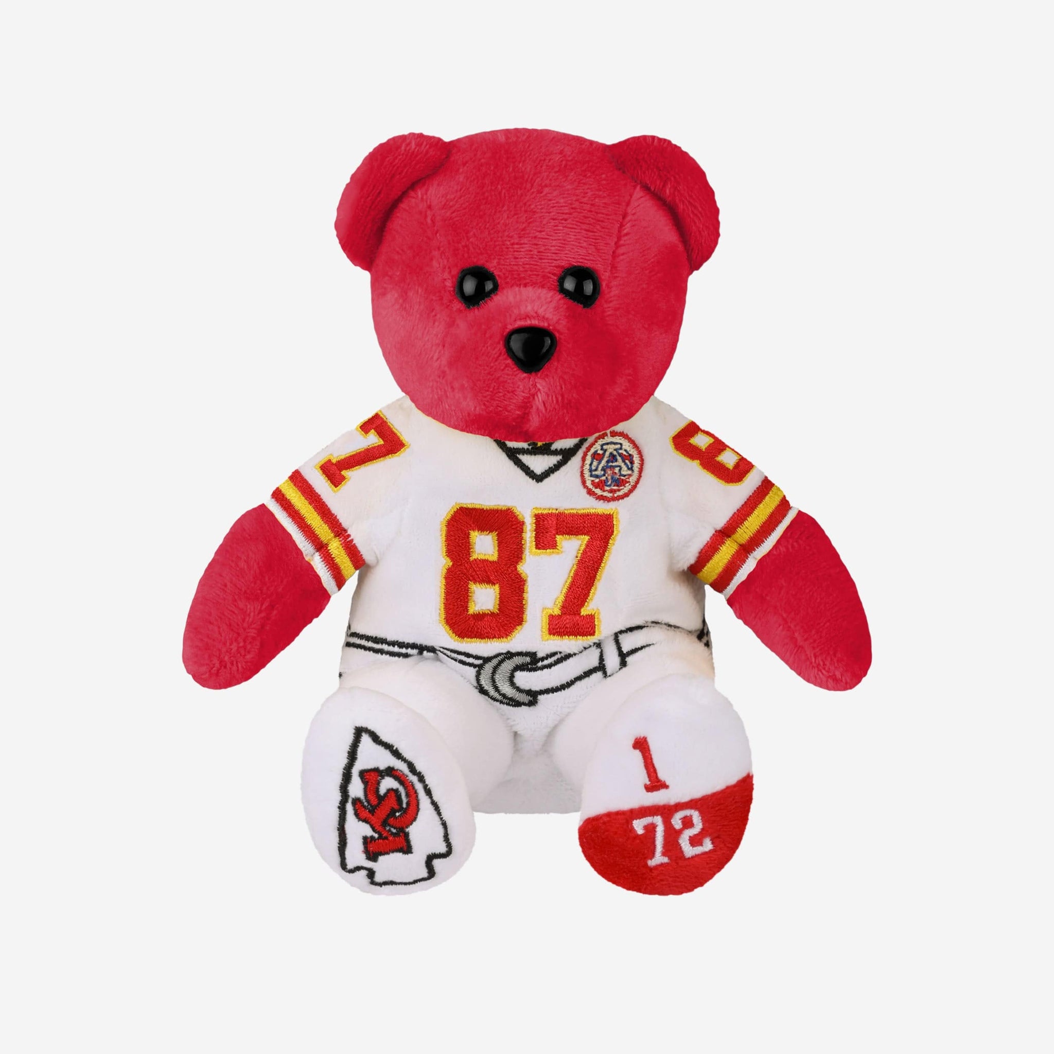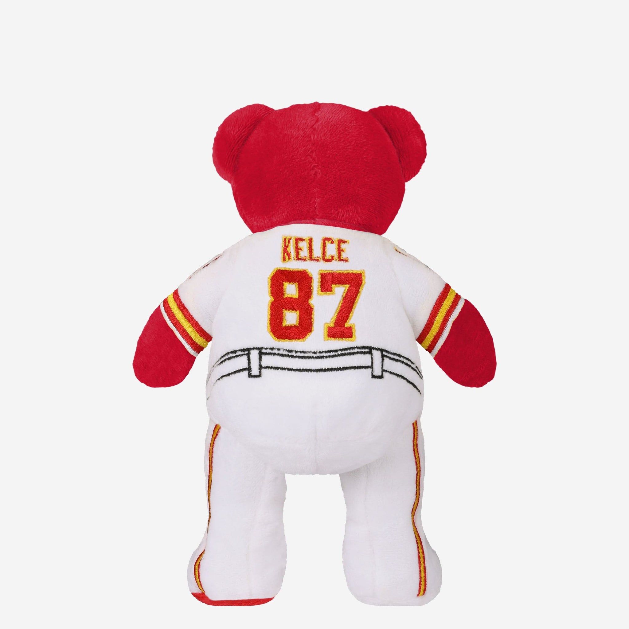 A limited-edition collectible you can’t *bear* to miss out on! Take things from the gridiron to your fancave with this Travis Kelce Kansas City Chiefs Away Uniform Team Beans Embroidered Player Bear. Only 72 made!