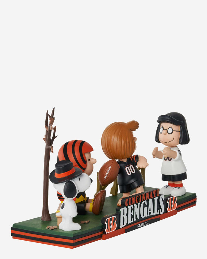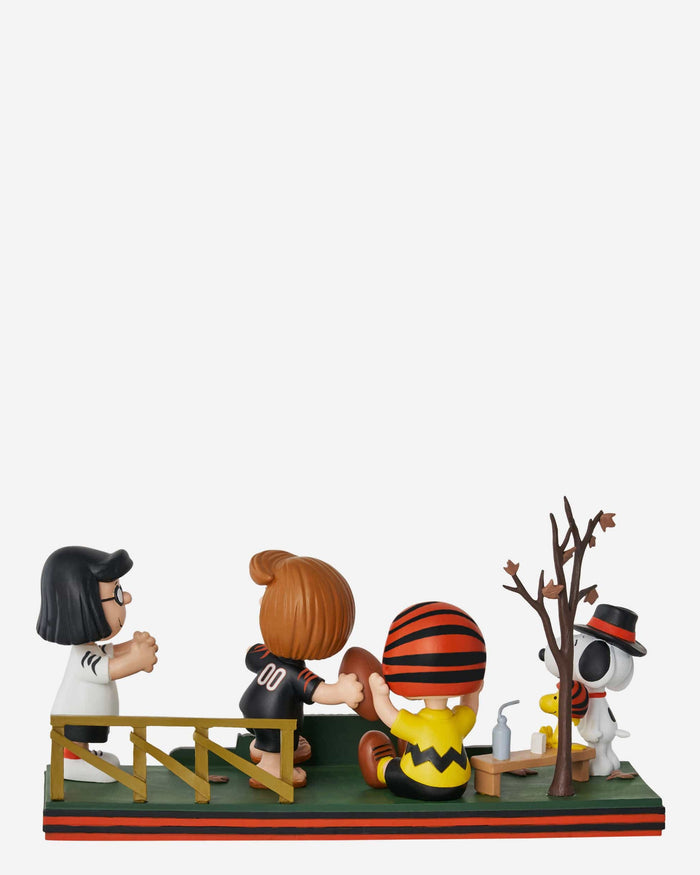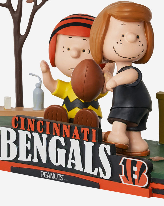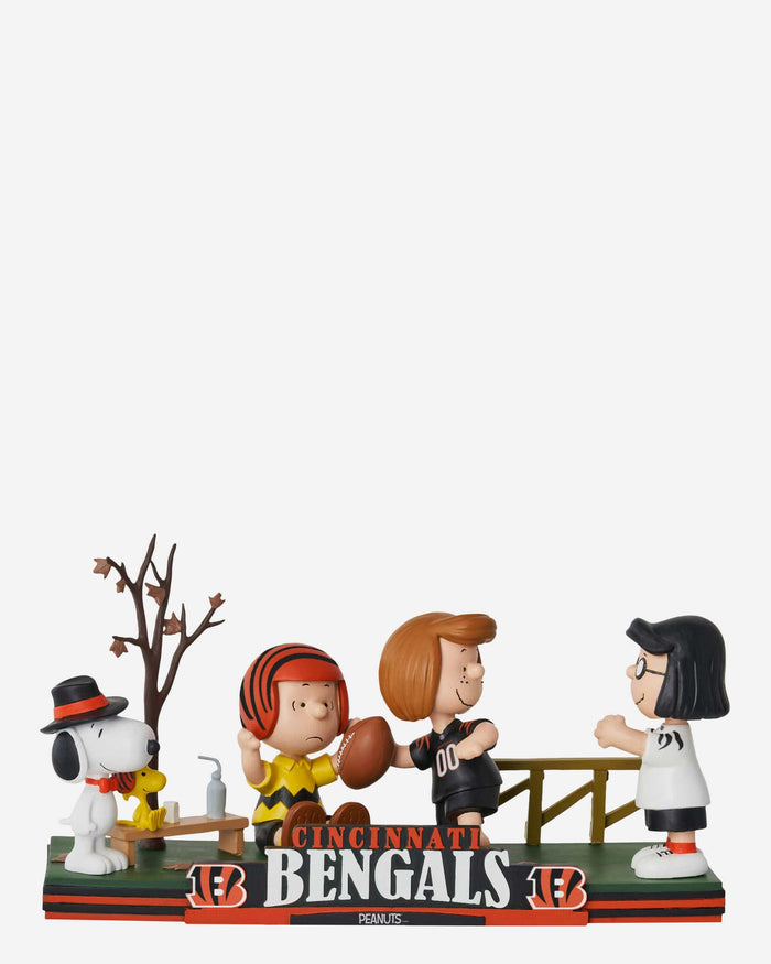 Get that touchdown dance ready. Bring all the gameday goodness to your collection and show off some superstars in your huddle with this Cincinnati Bengals Peanuts Gang Football Field Mini Bobblehead Scene.