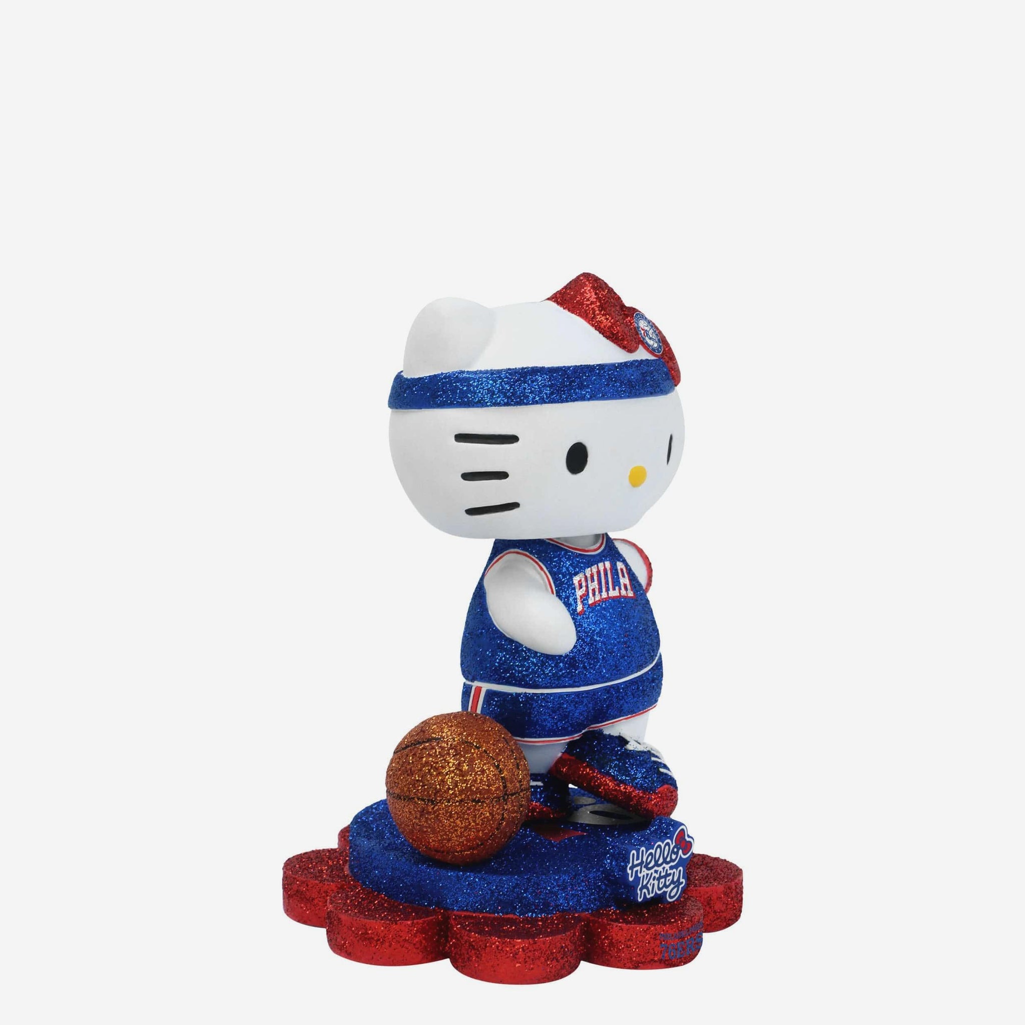 Cute, collectible, and courtside-ready! Hello Kitty® is officially hitting the hardwood and your collection in sparkle style with the Philadelphia 76ers Hello Kitty® Glitter Mini Bobblehead.