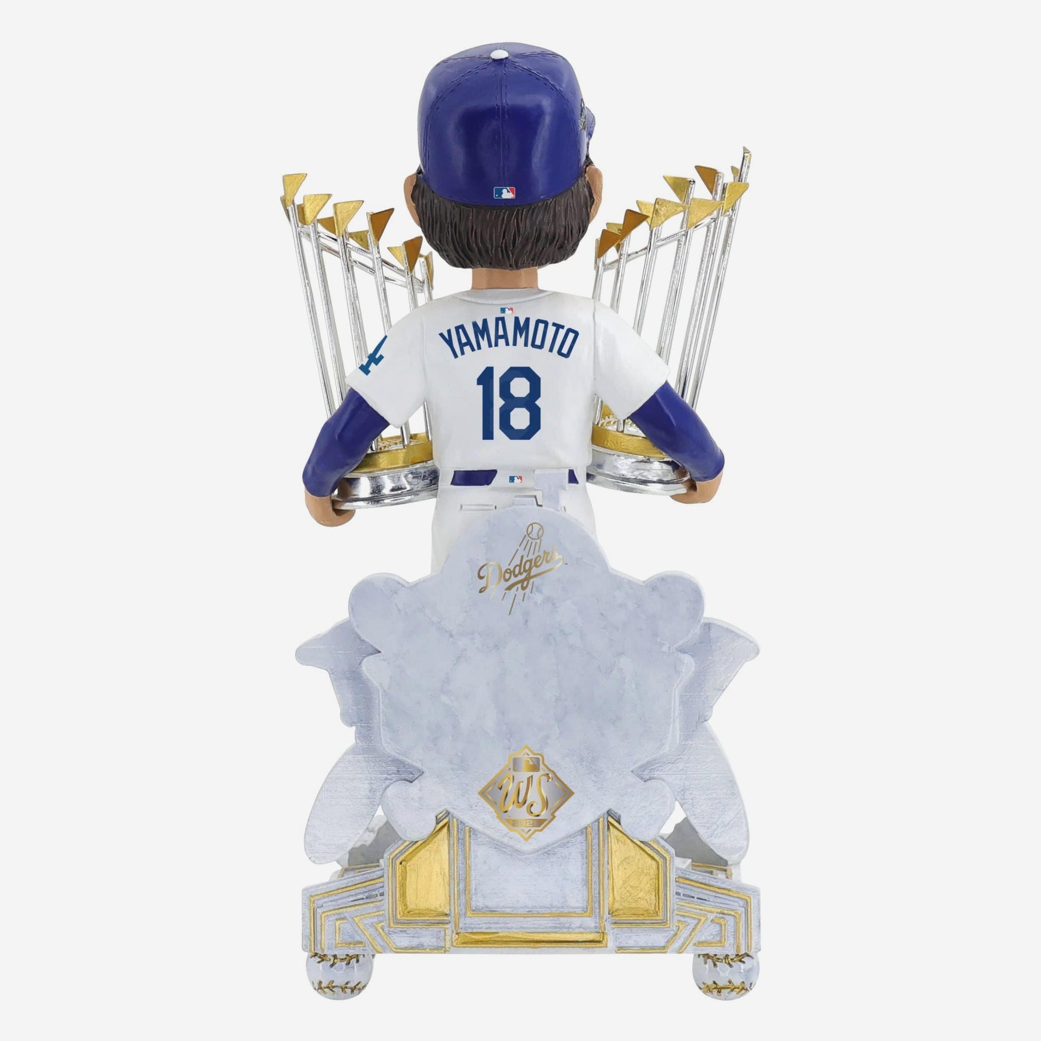 The Dodgers are Back To Back World Series Champions! Celebrate the dynasty in your collection with this Yoshinobu Yamamoto Los Angeles Dodgers 2025 Back To Back World Series Champions Celebration Bobblehead.