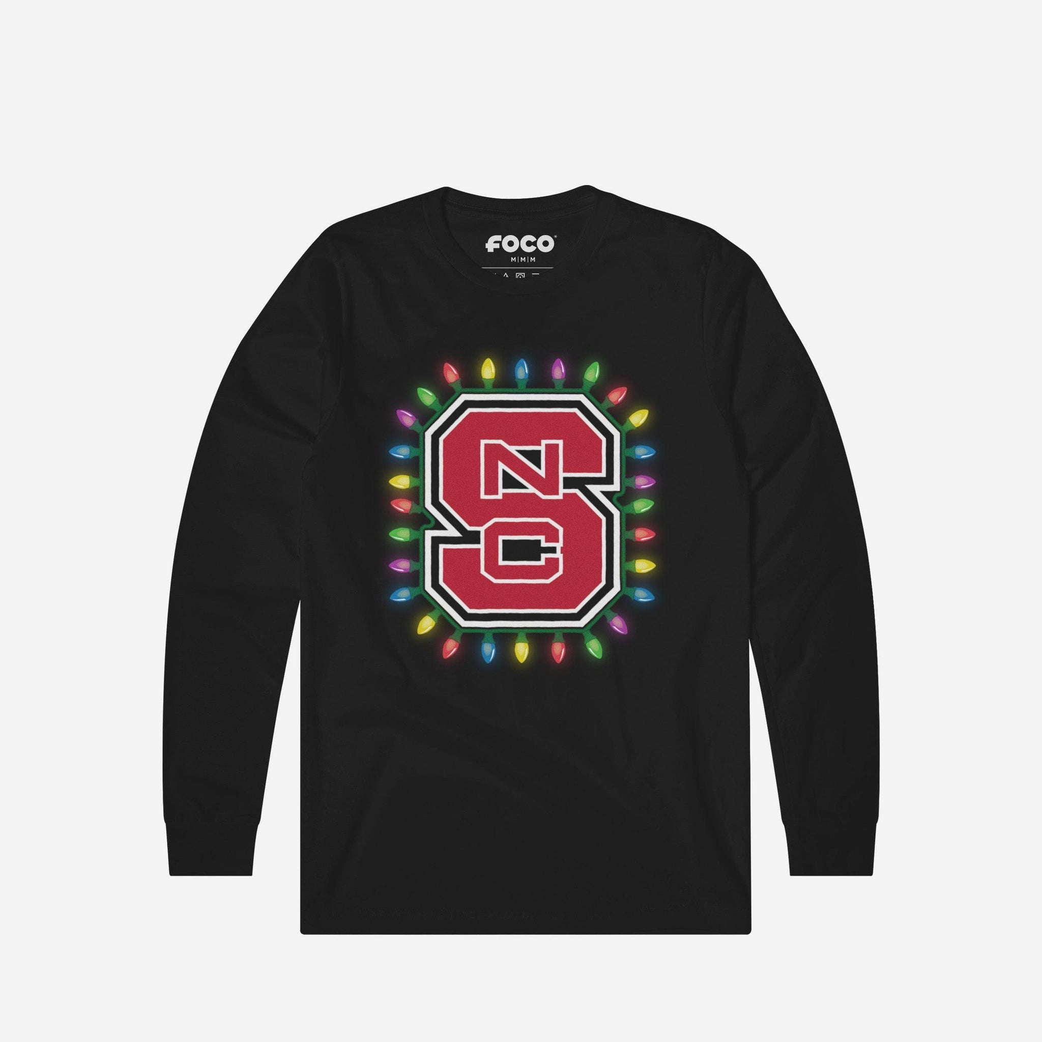 NC State Wolfpack Primary Logo Holiday Lights Long Sleeve T-Shirt FOCO S - FOCO.com