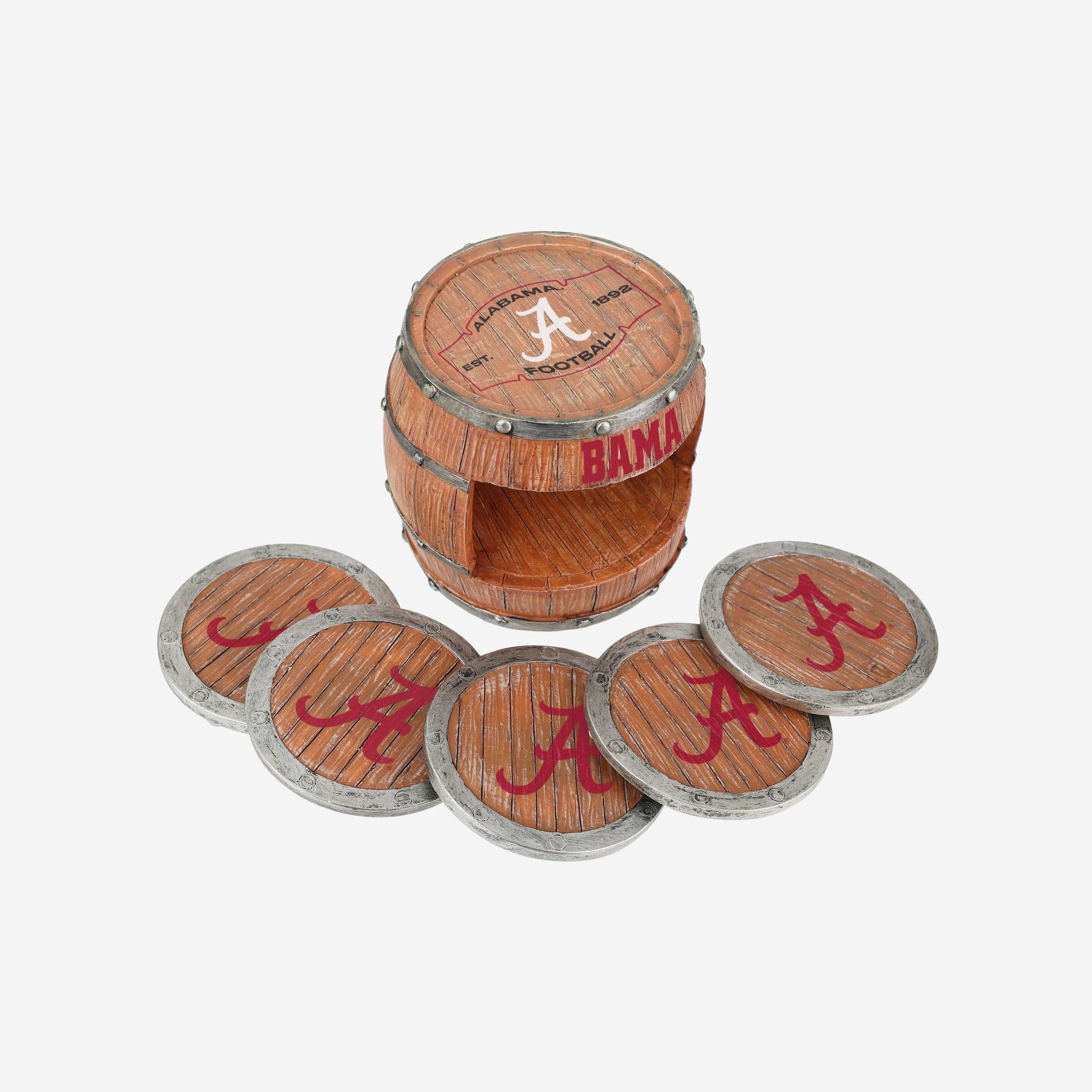 Championship rings? Yay! Unsightly rings on the coffee table? Boo! Break out the beverages worry-free and get ready for every watch party with this Alabama Crimson Tide 5 Pack Barrel Coaster Set.
