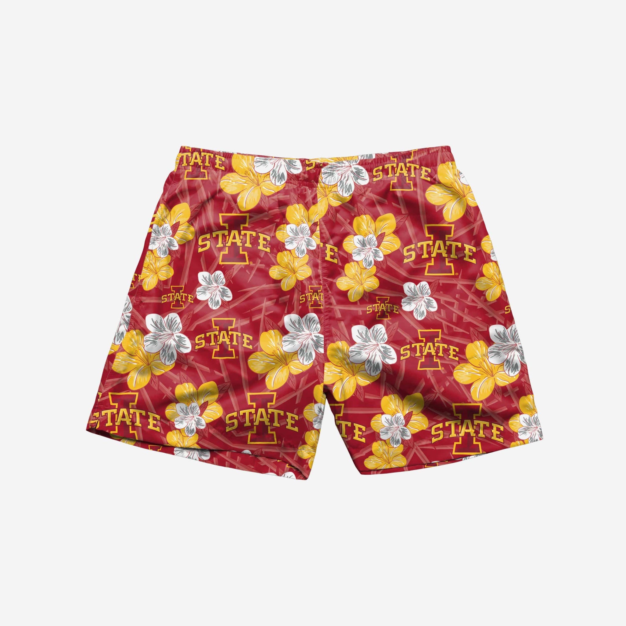 Rock your fandom and say aloha to the pool, ocean, lake, hot tub, or whatever body of water you're getting into while you wear these Iowa State Cyclones Hibiscus Swimming Trunks.