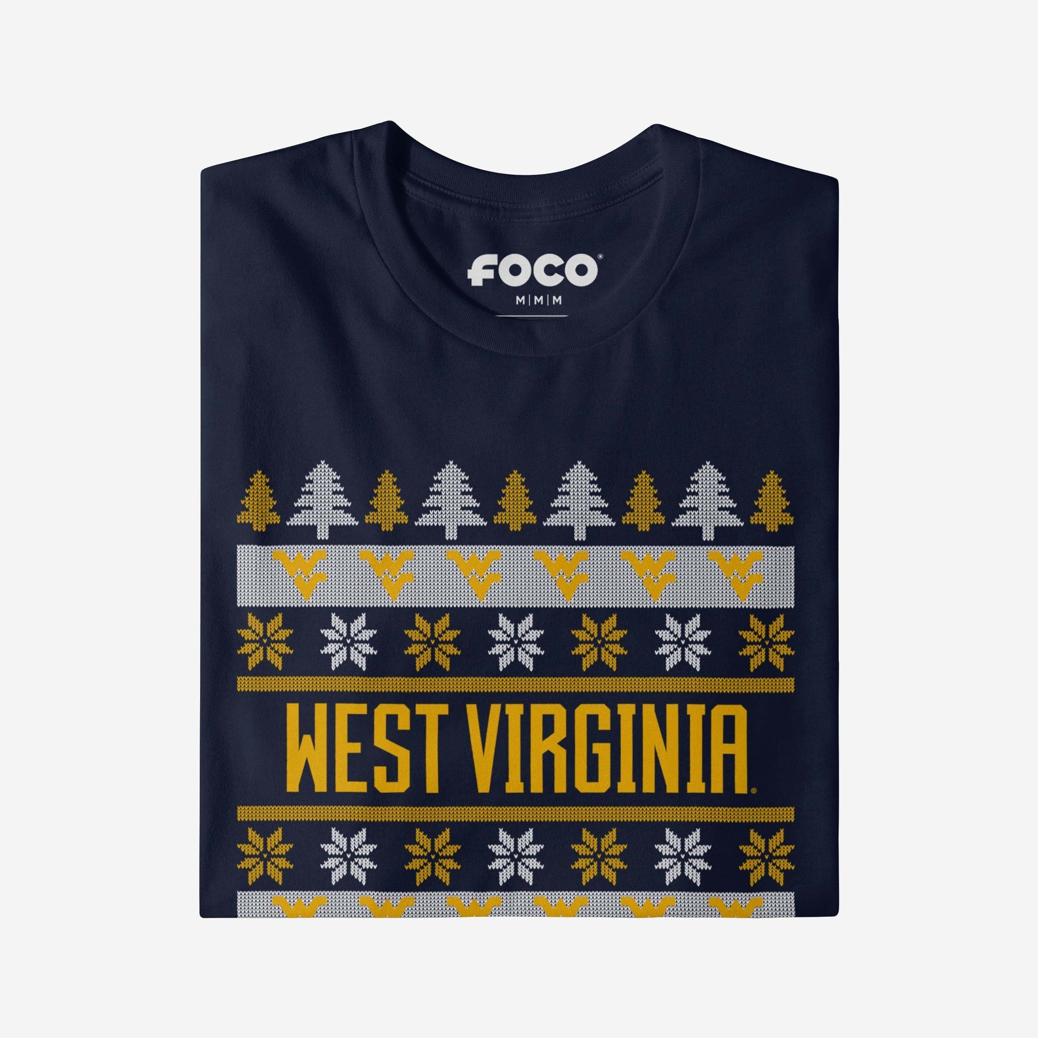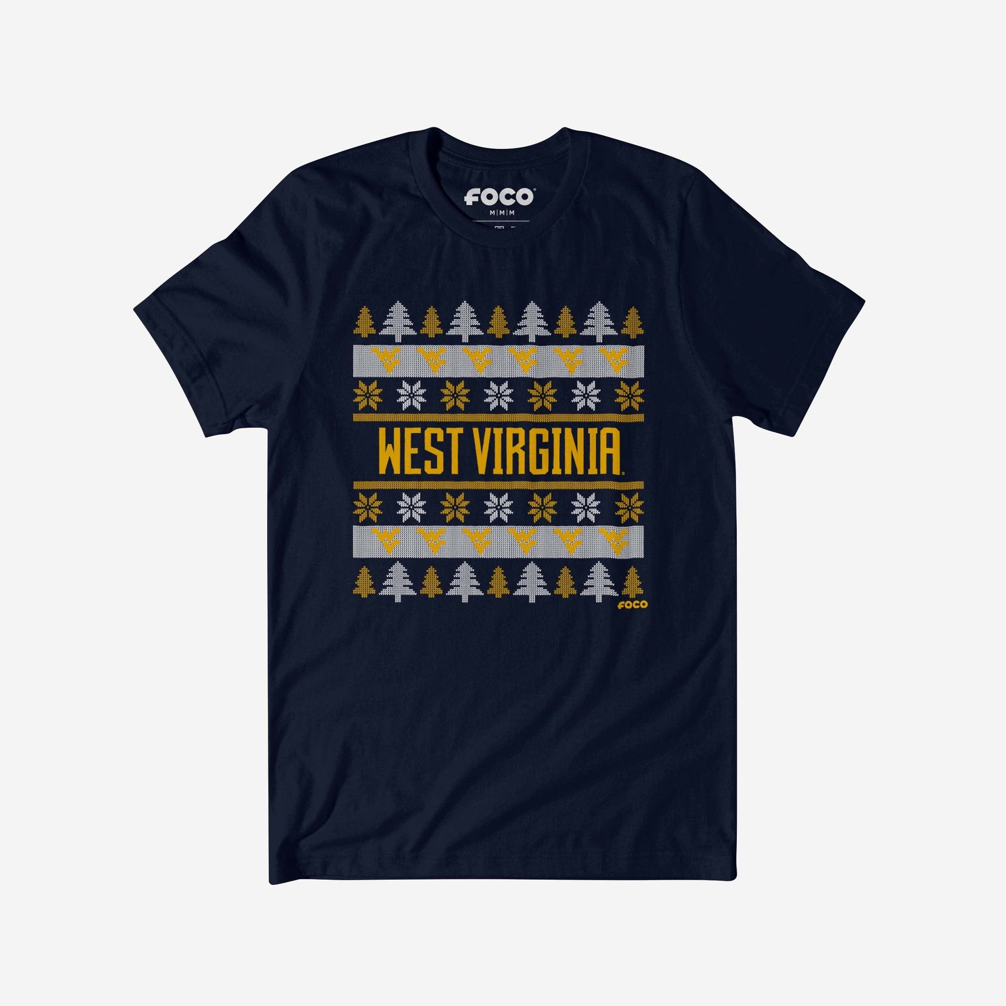 - Festive, team-colored design: This traditional t-shirt shows off the official West Virginia Mountaineers colors in an all-over team-colored design with winter tree and snowflake accents, so you can show your team spirit with pride.