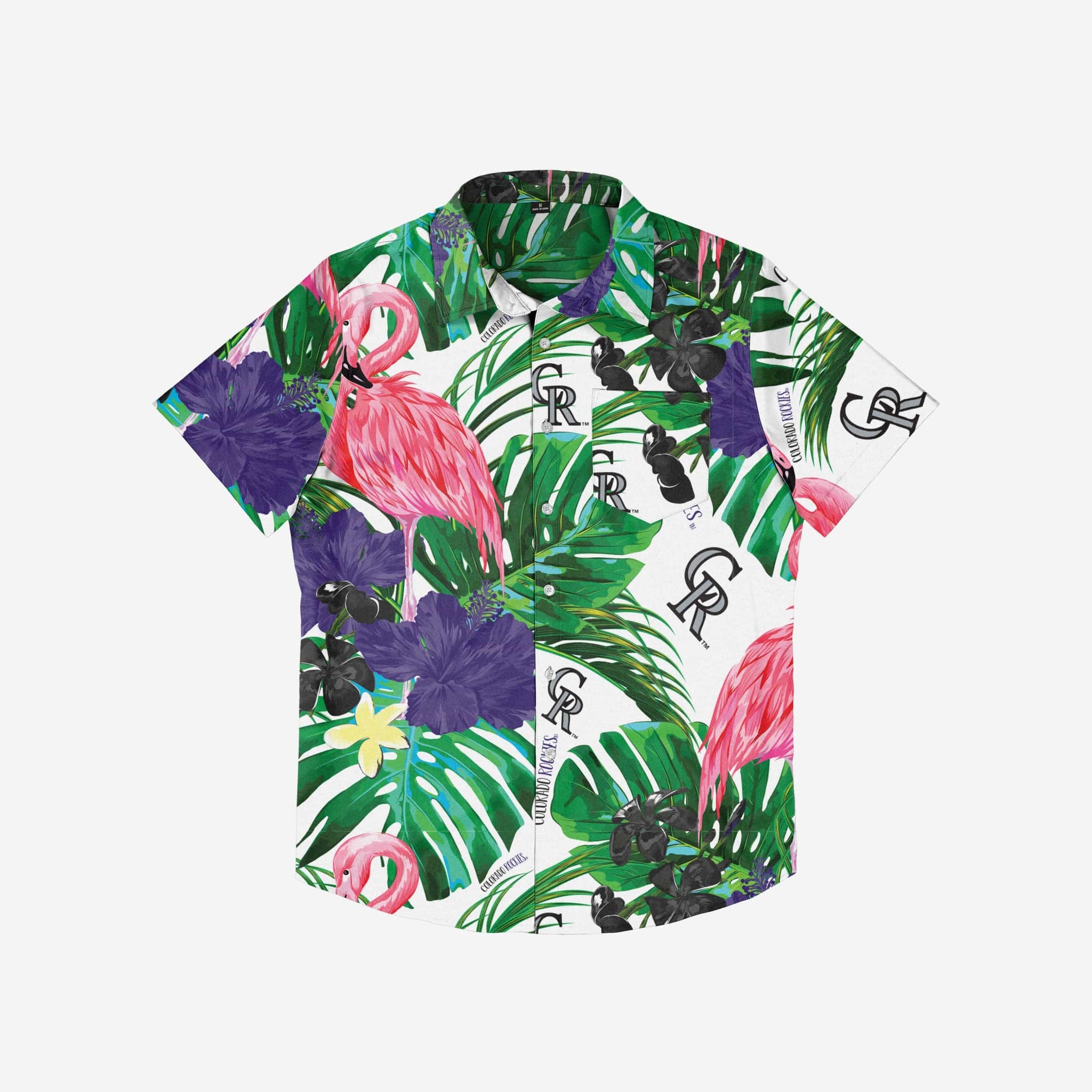 Aloha, party people! No need to set your watch - You're always on island time when you're rocking this Colorado Rockies Flamingo Button Up Shirt.
