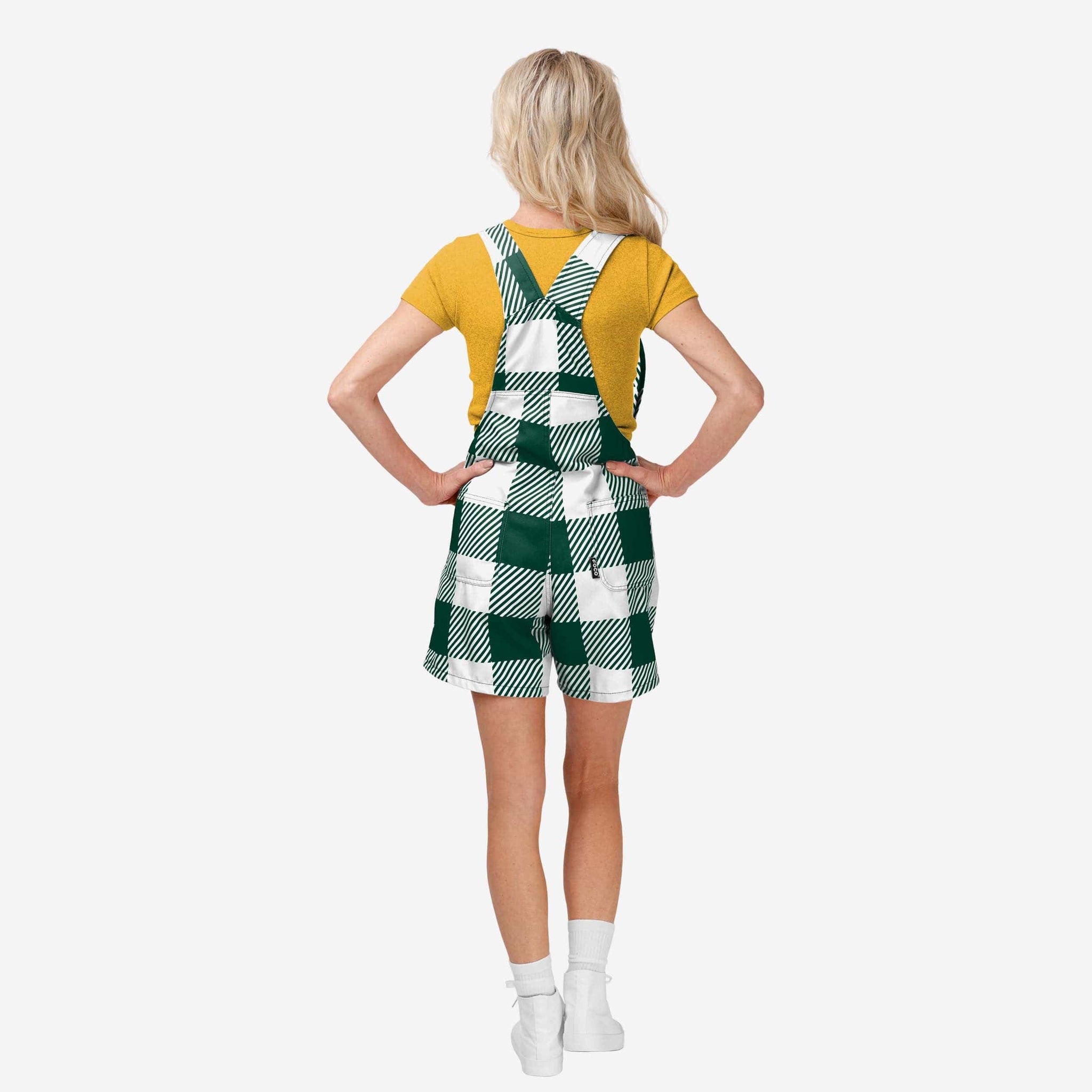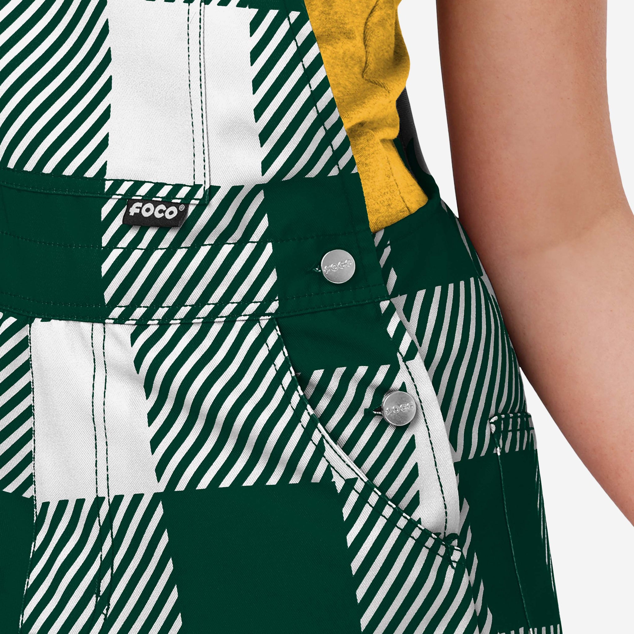 Green Bay Packers Womens Plaid Bib Shortalls FOCO XS - FOCO.com