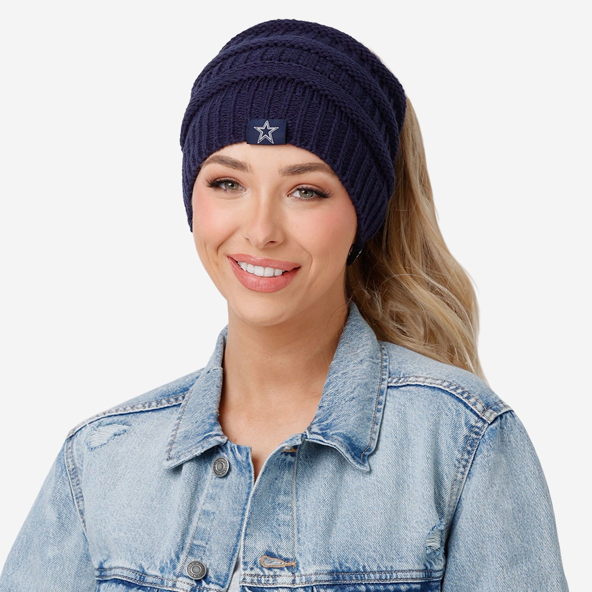 Putting together the ultimate fit for the tailgate and beyond? Make sure to get your head in the game with the Dallas Cowboys Women's Solid Ponytail Beanie!