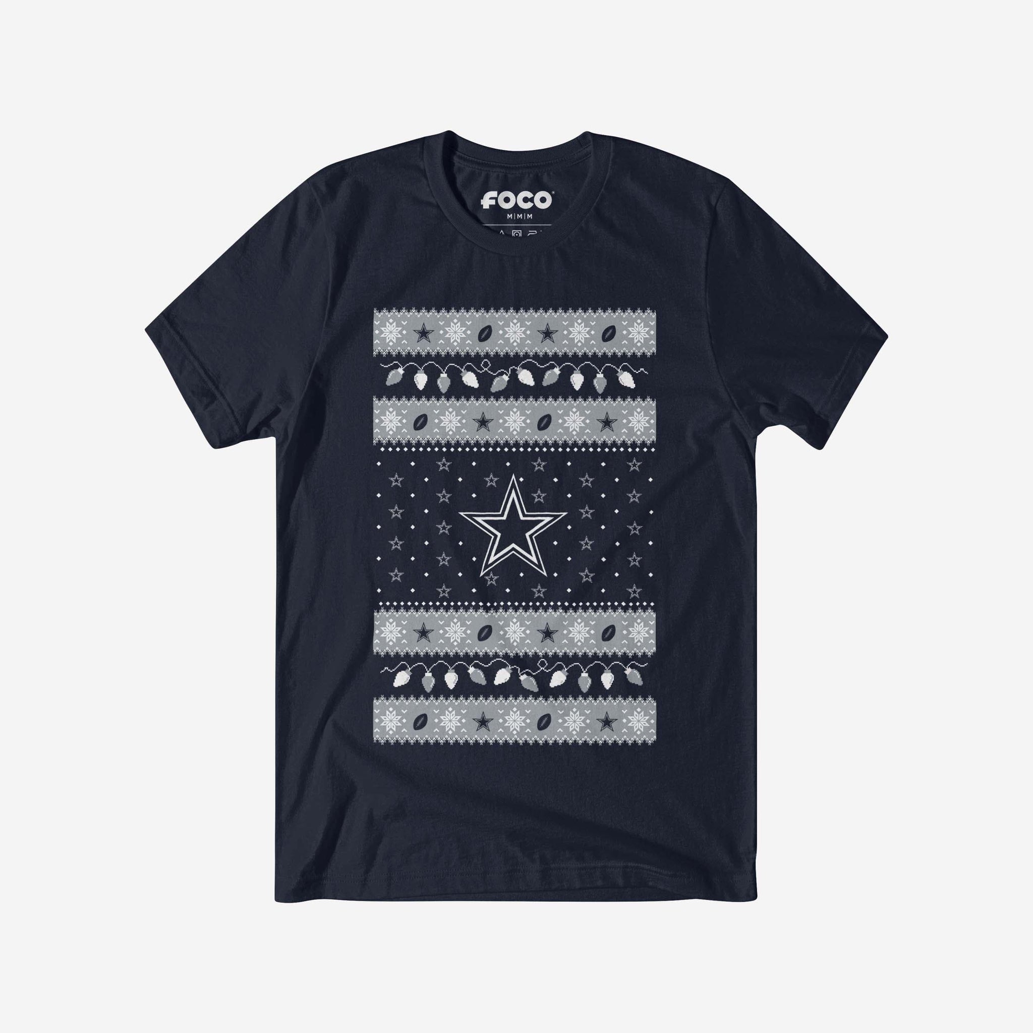 ‘Tis the season for some festive fandom! Make this holiday season merry and bright with the Dallas Cowboys Holiday Lights Sweater T-Shirt.