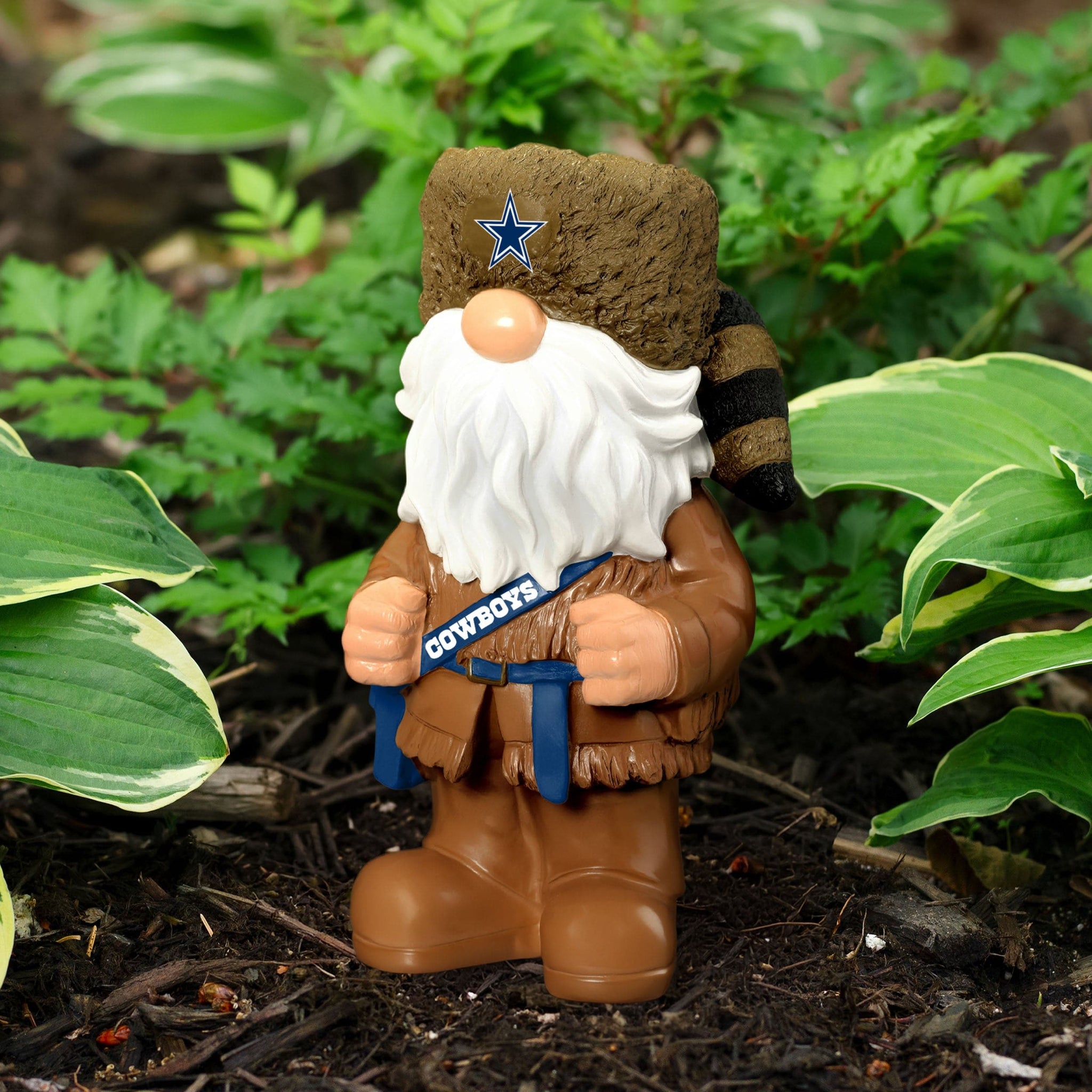 Blaze a trail of team pride with the Dallas Cowboys Frontiersman Americana Gnome. Featuring rugged frontier style mixed with patriotic flair, this bold backyard companion is ready to defend your lawn and your fandom.