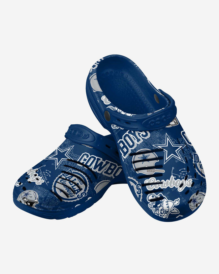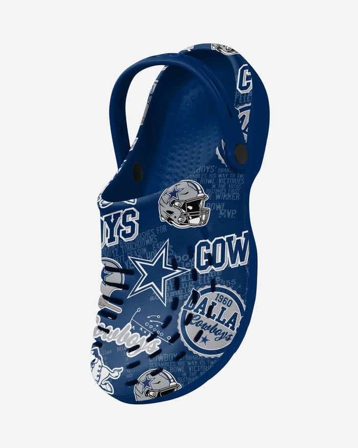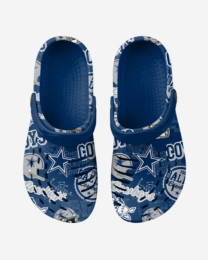 The Dallas Cowboys Historic Print Clogs with Straps are here to help you take a step into the time machine and celebrate your franchise's glorious history.