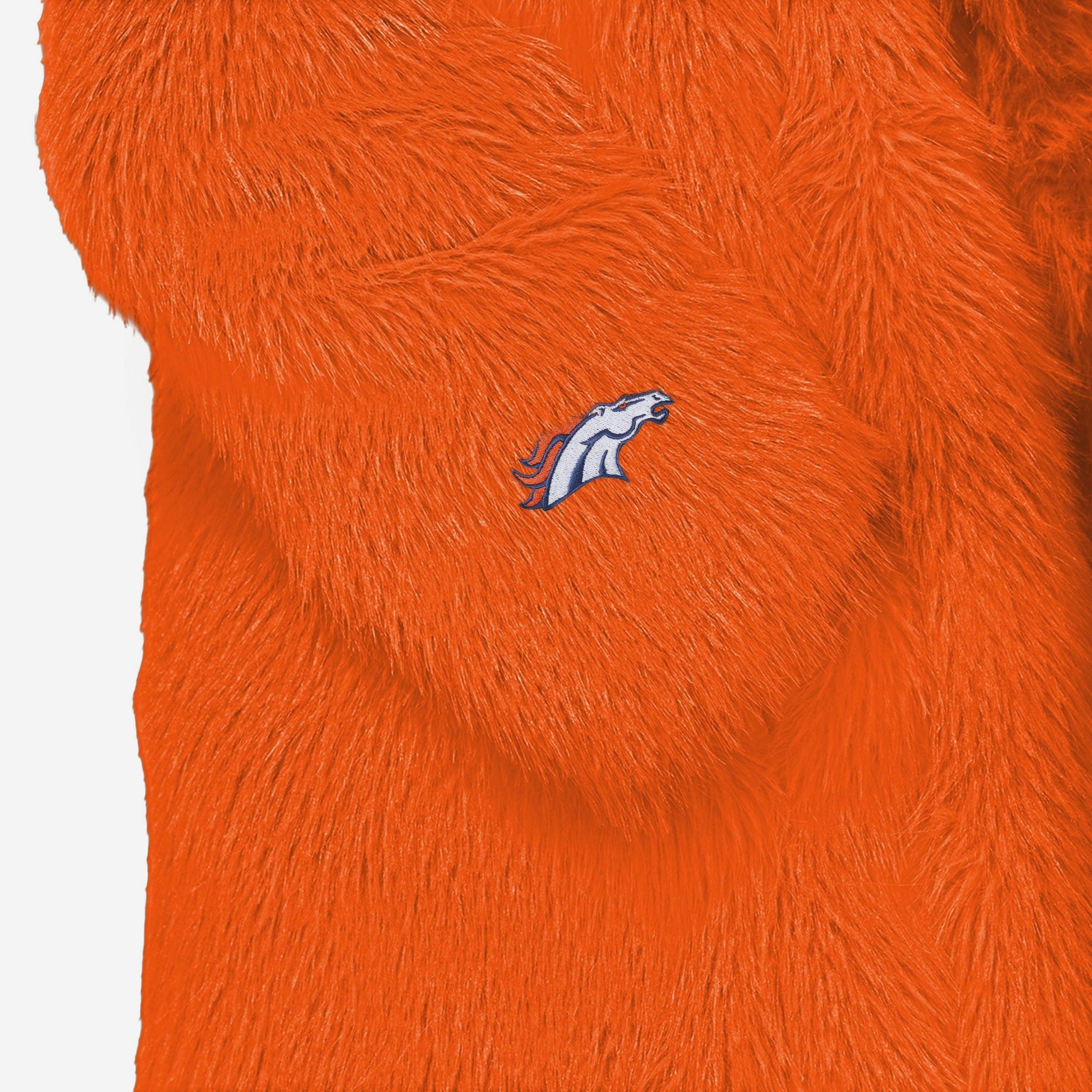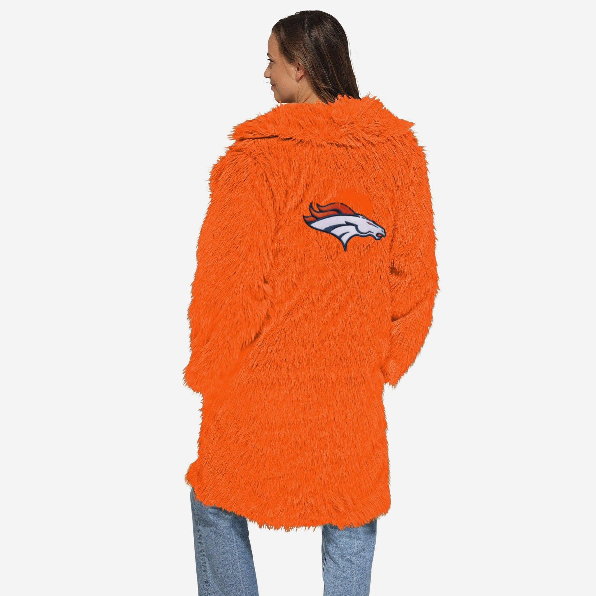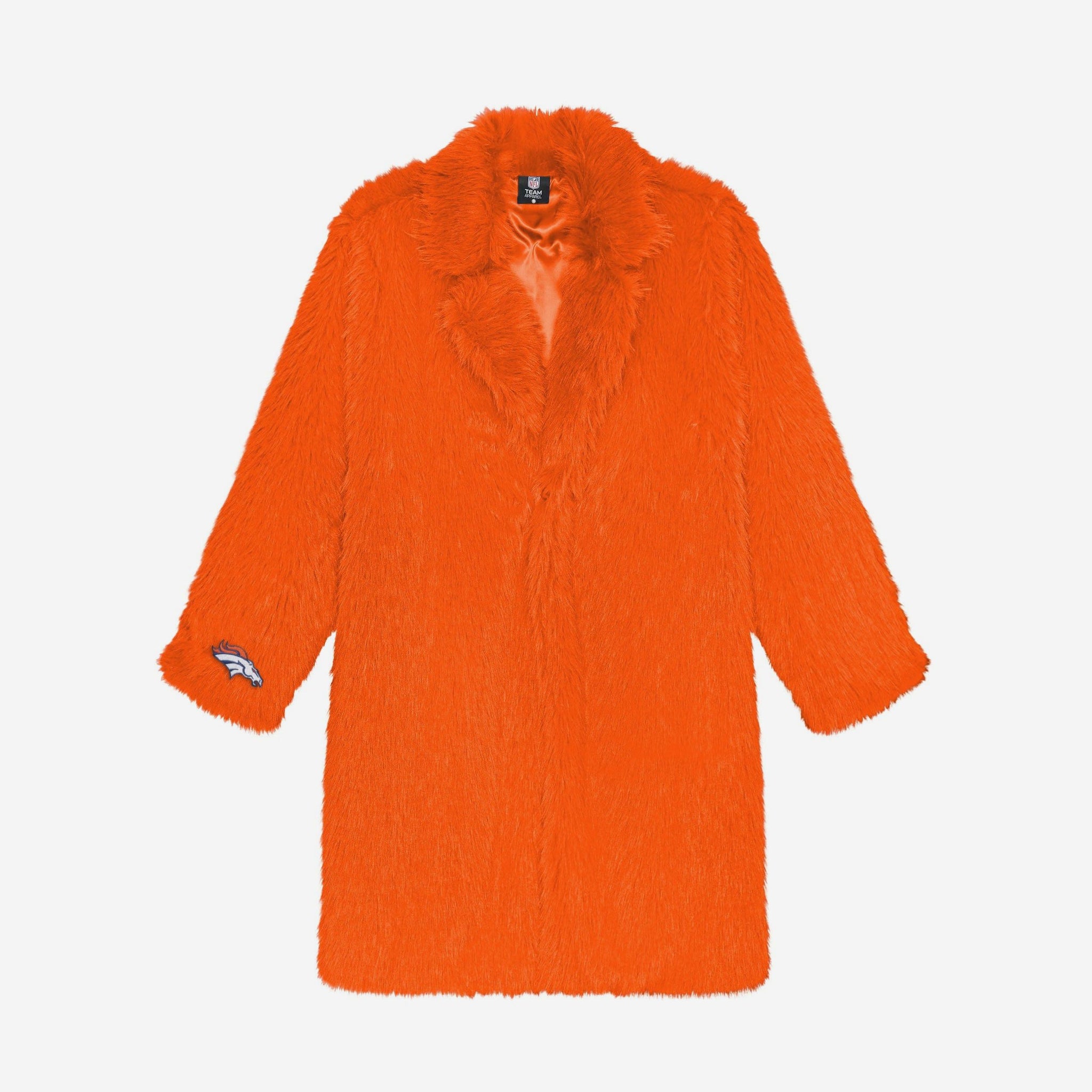 Stay warm, look sharp, and rep your squad with the Denver Broncos Faux Fur Long Jacket. Made from ultra-soft faux fur with an all-over team-colored design and bold embroidered logos, this jacket brings game day glam and cozy comfort together in one statement piece.