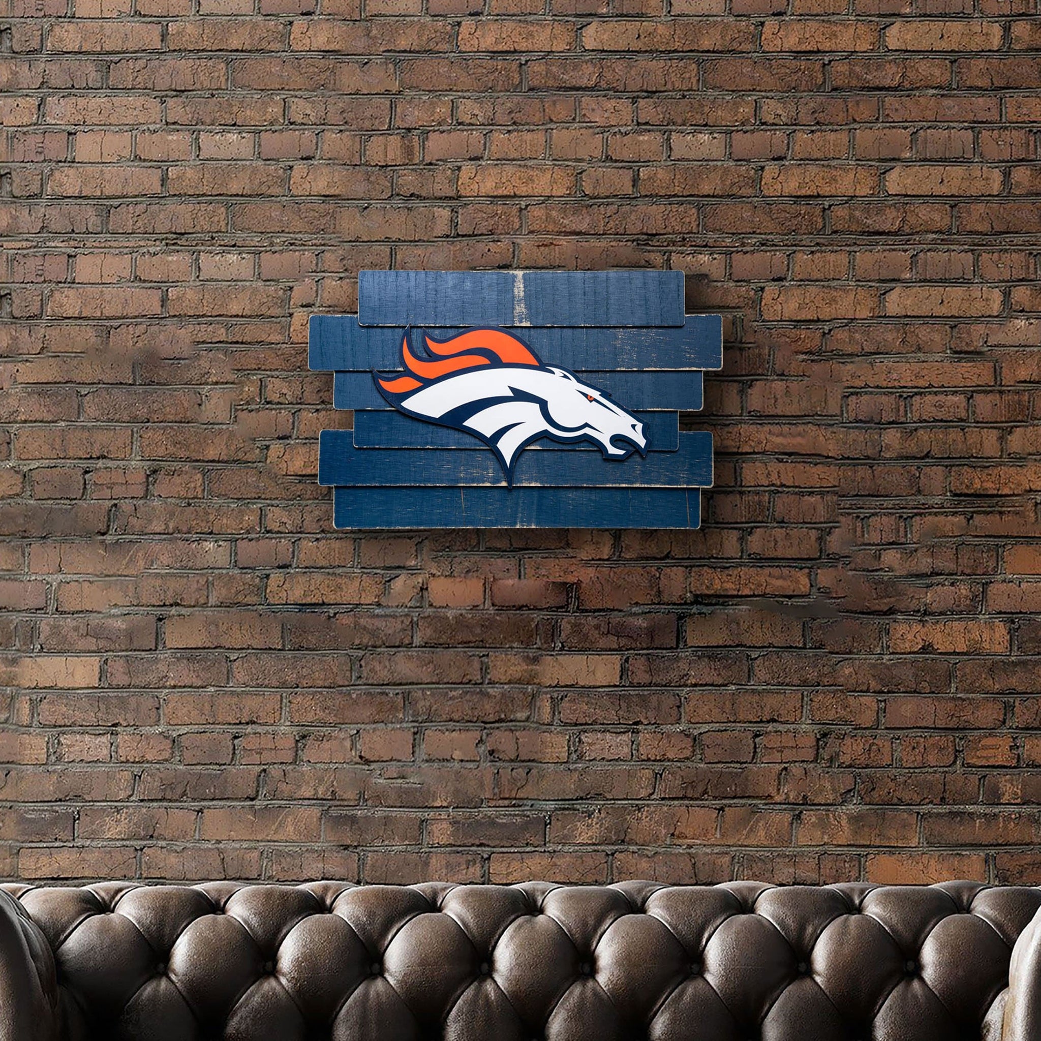 It's time to take your fancave from very good, to MVP status. Hang up this Denver Broncos Staggered Wood Logo Sign and make sure all of your guests coming over to watch the big game know where your allegiances lie.