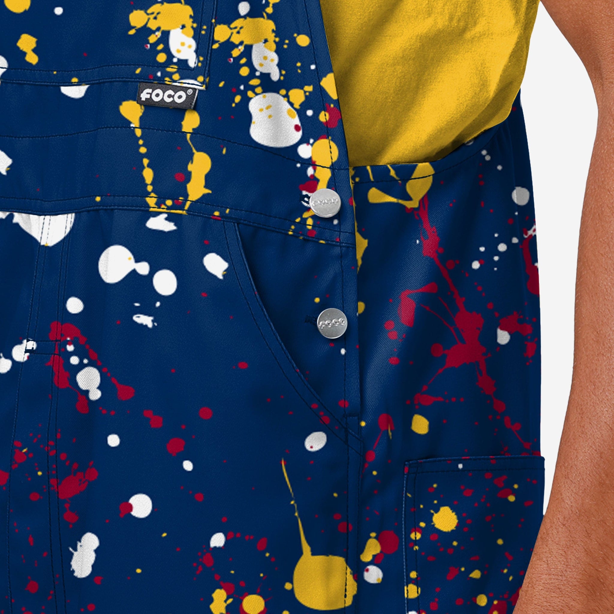The bib pocket is perfect for storing your phone, wallet, or other essentials, and the adjustable bib shoulder straps ensure a comfortable fit. Two back pockets provide even more storage space. These overalls are made of sturdy and functional woven polyester canvas that is lightweight and breathable. They are long enough to provide coverage and durability, so you can focus on cheering on your team without worrying about your outfit. If the world is a canvas, then you, your fandom, and these overalls combine to form one incredible paintbrush.