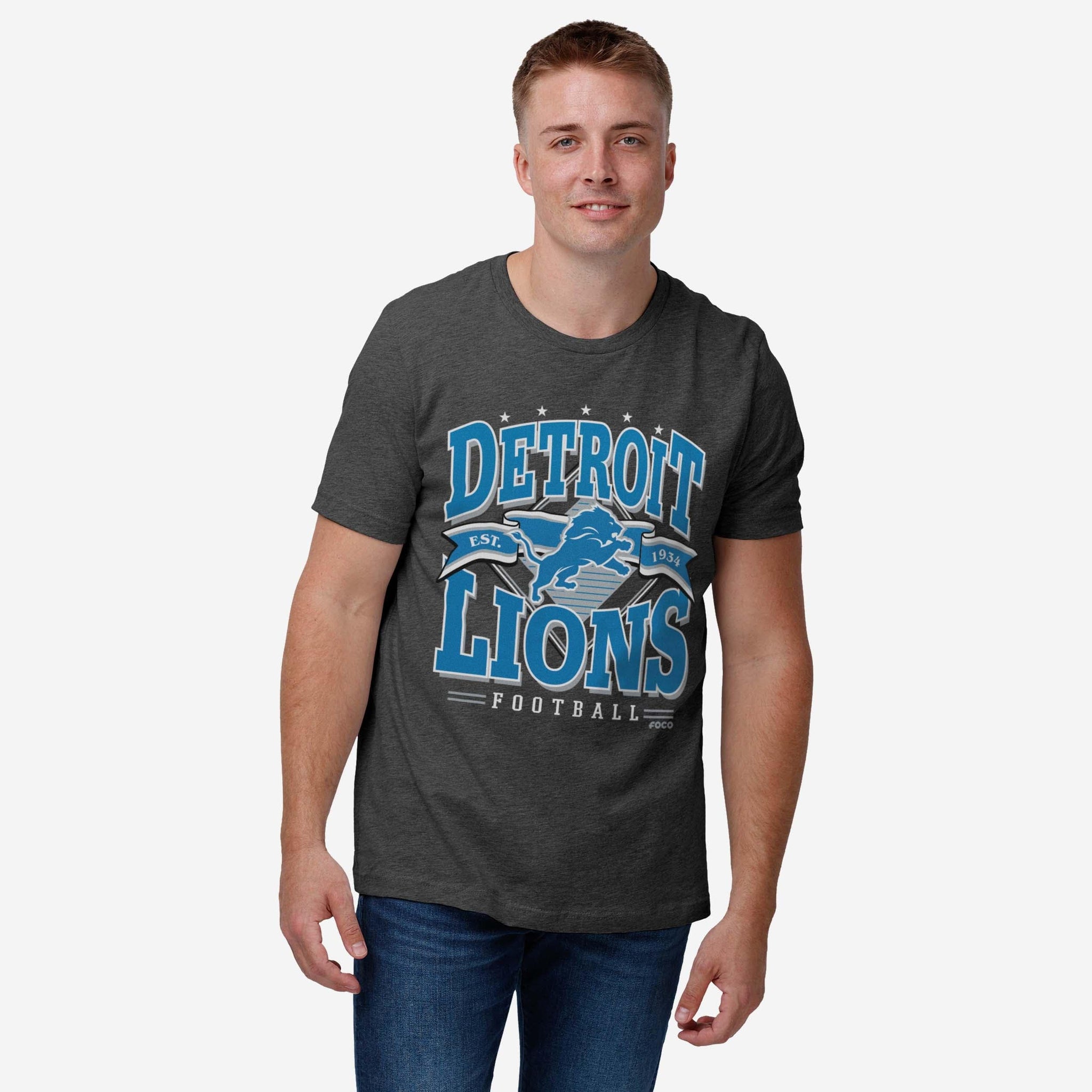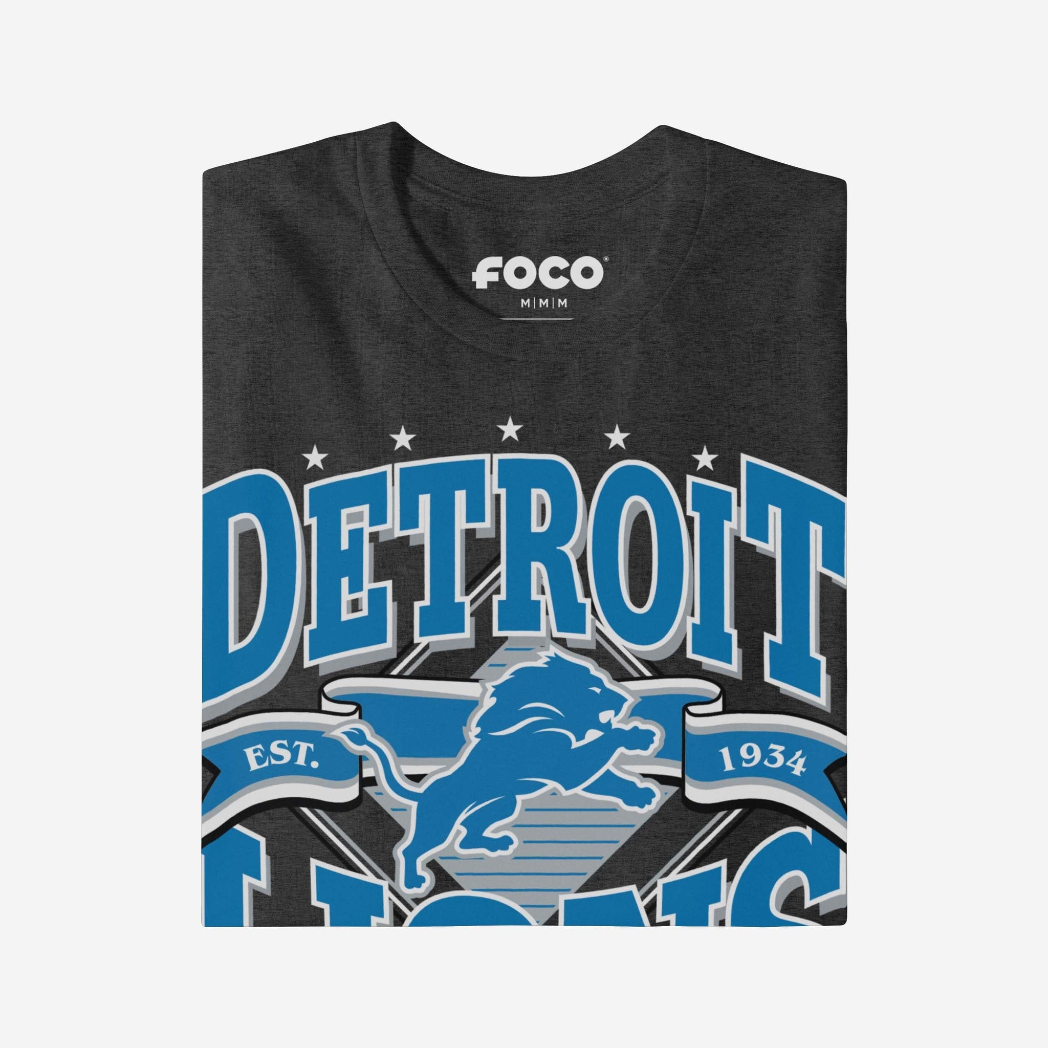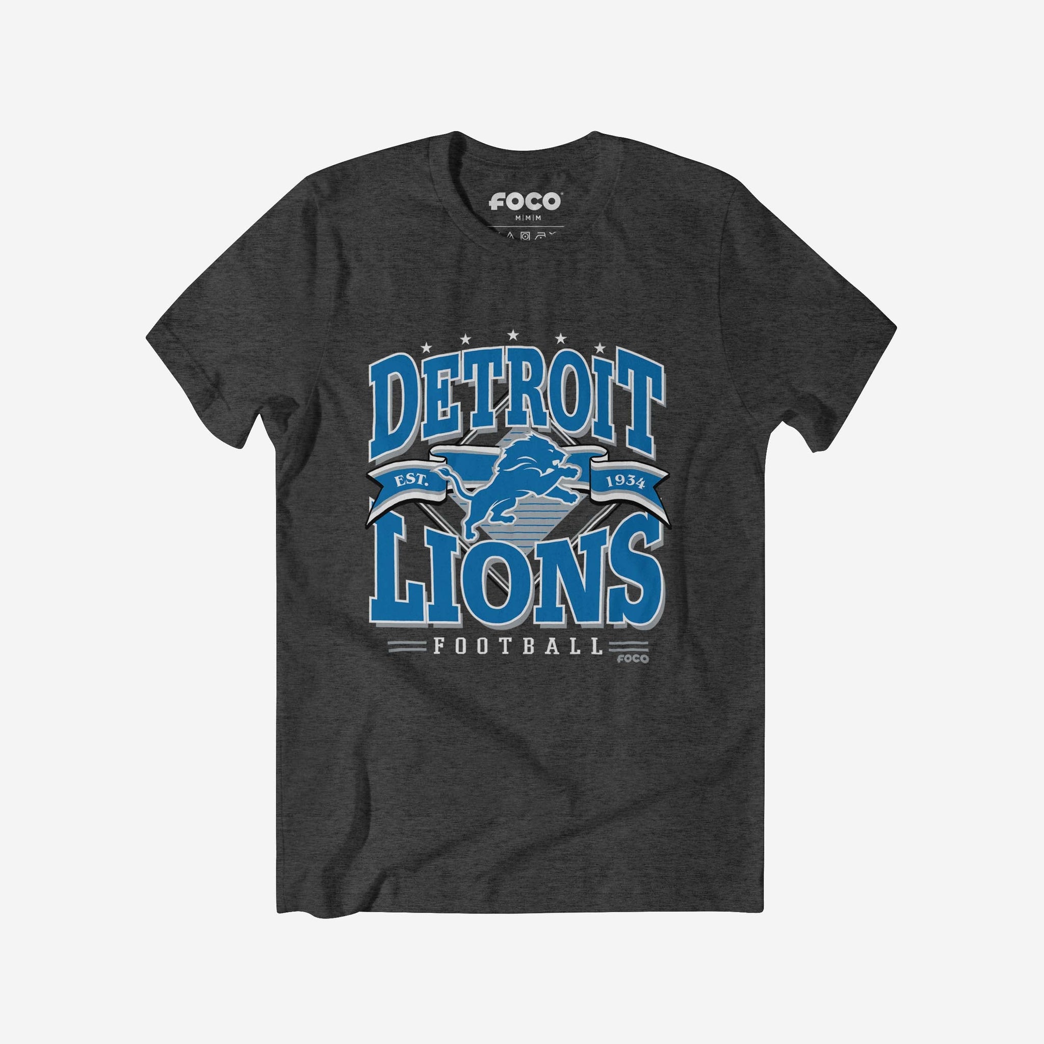 Detroit Lions Established Banner T-Shirt FOCO Dark Grey Heather S - FOCO.com