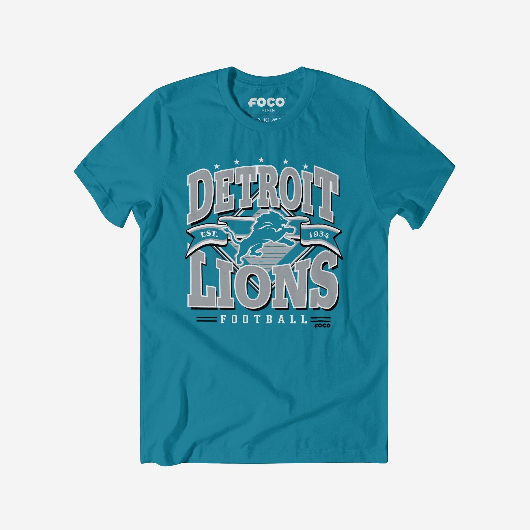 Detroit Lions Established Banner T-Shirt FOCO Neon Blue S - FOCO.com