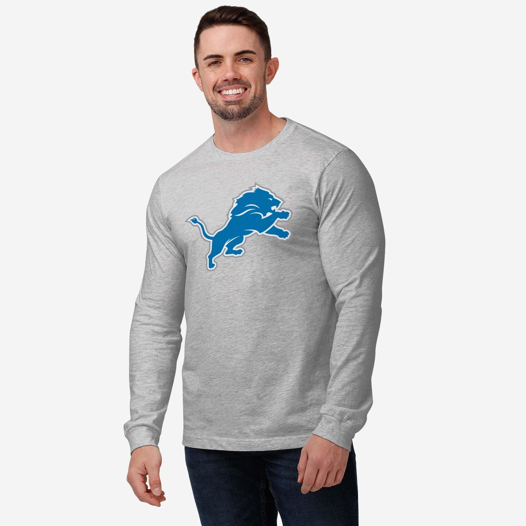 Detroit Lions Primary Logo Long Sleeve T-Shirt FOCO Athletic Heather S - FOCO.com