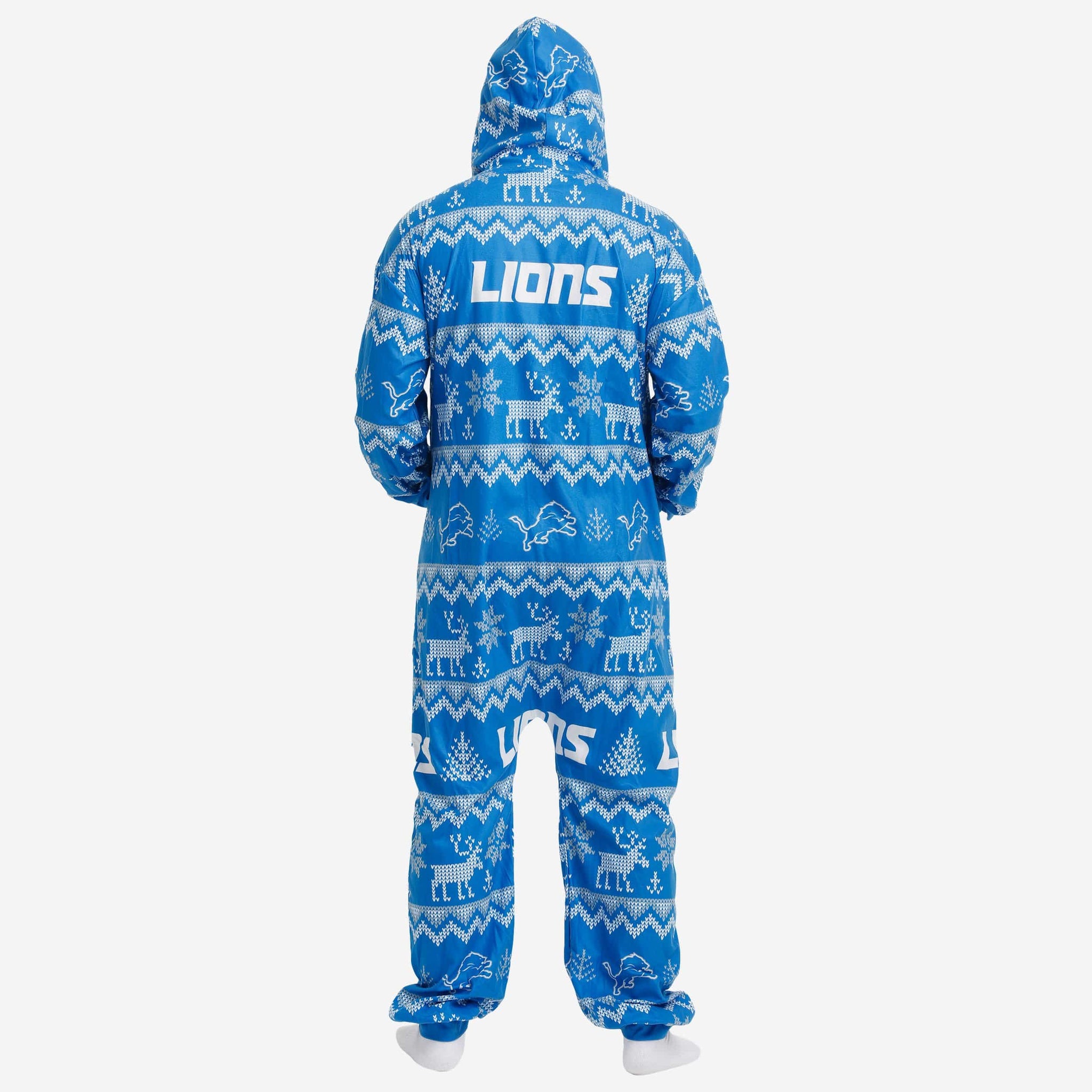 Get some matching family pajamas and dress to impress this holiday season! You won't want to miss these onesie team pajamas! These men's and women's PJ's are comfortable and show off your team spirit in the form of some sweet one piece jammies. Introducing the Detroit Lions Ugly Pattern One Piece Pajamas! Don't forget to take your holiday photo with the whole family wearing matching Christmas pajamas!