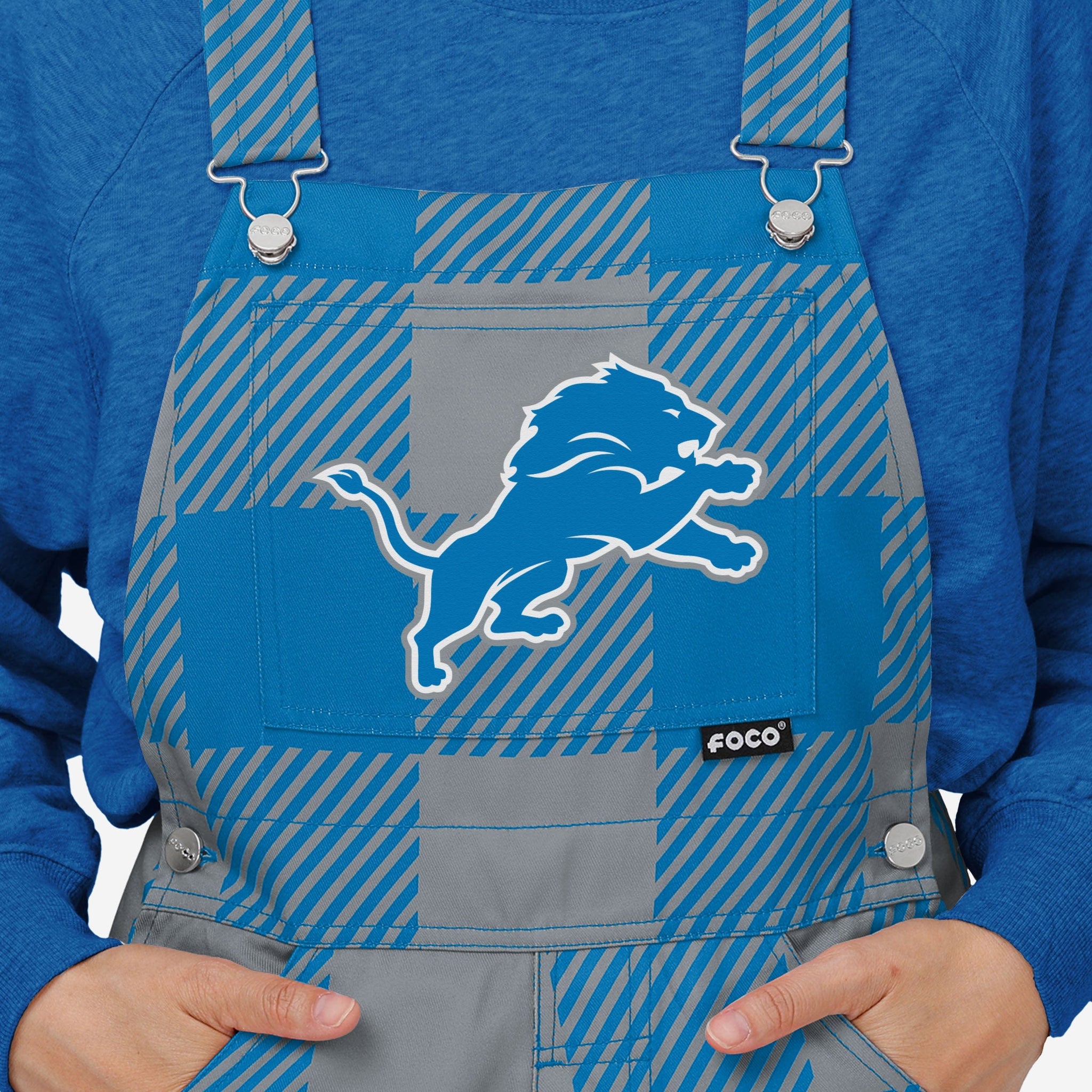 - All-over team-colored design: These overalls are covered in the official Detroit Lions colors, so you can show your team spirit with pride.