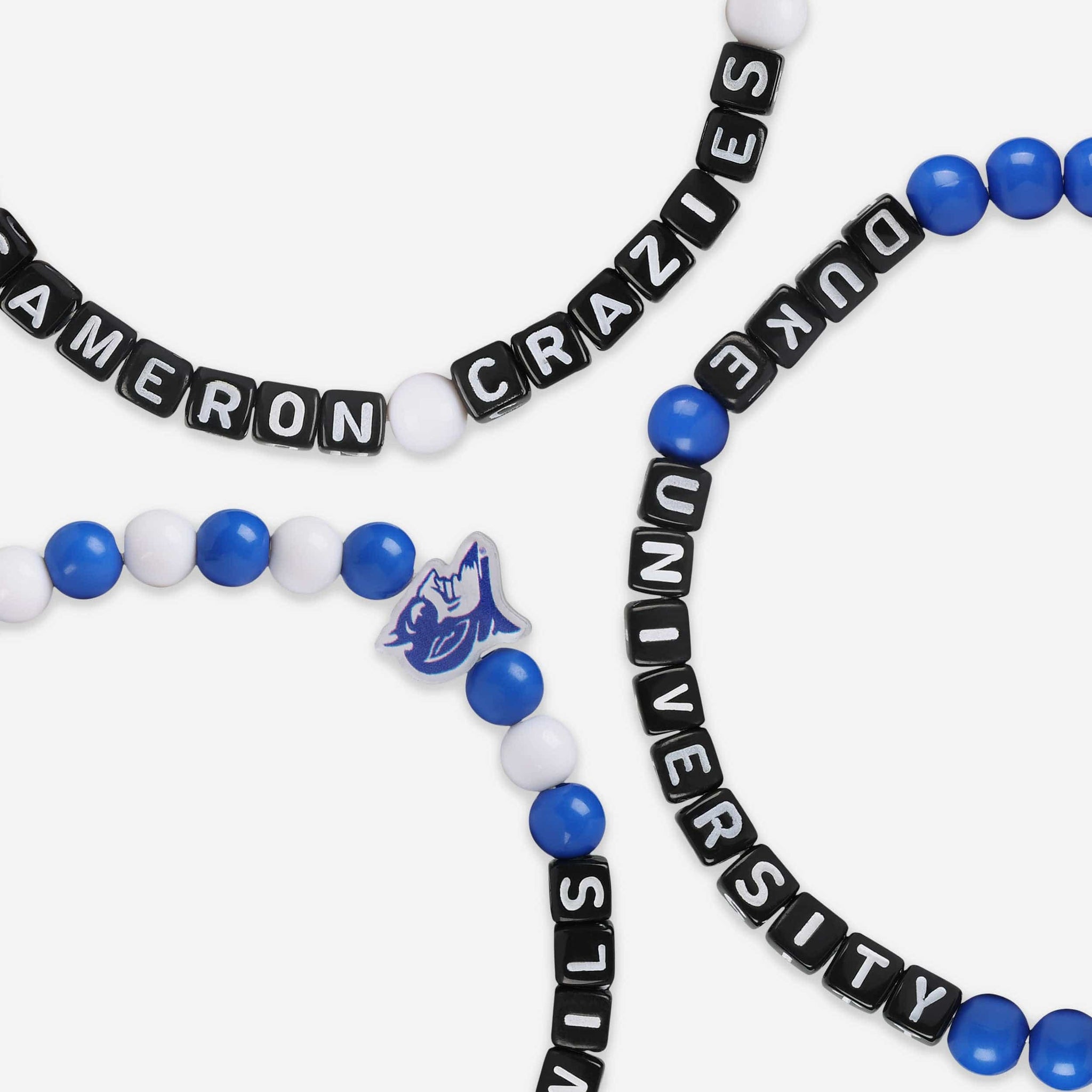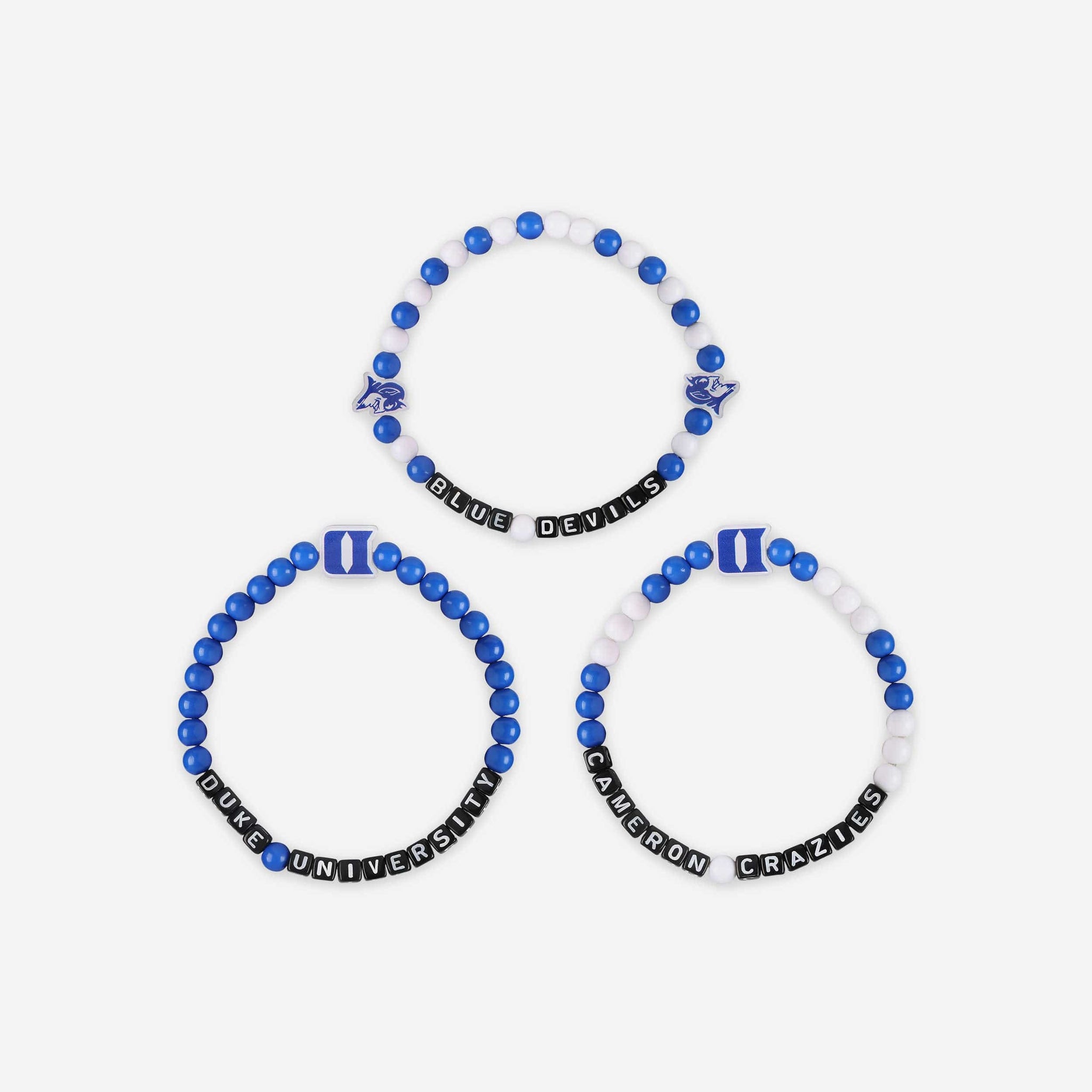 A whole new way to rep the team in style is here. Step up your fan fashion sense with this Duke Blue Devils 3 Pack Beaded Friendship Bracelet. These matching friendship bracelets have an all-over team-colored design and team logo displays, which makes them the perfect way to show your support for the Duke Blue Devils on gamedays and every day in between.
