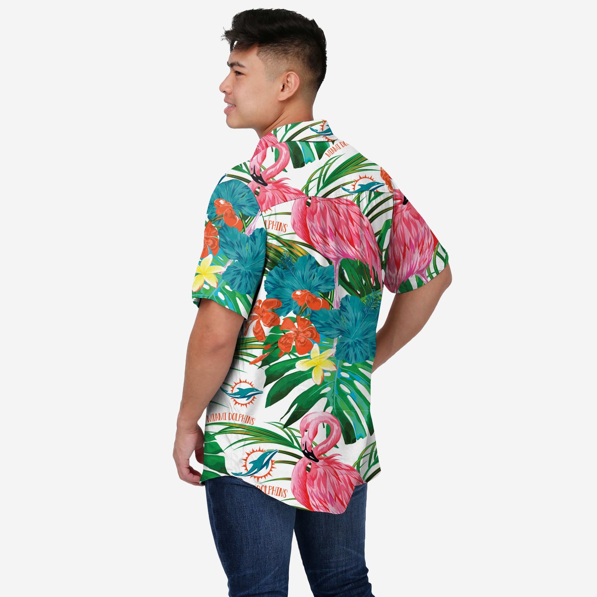 Miami Dolphins Flamingo Button Up Shirt FOCO - FOCO.com