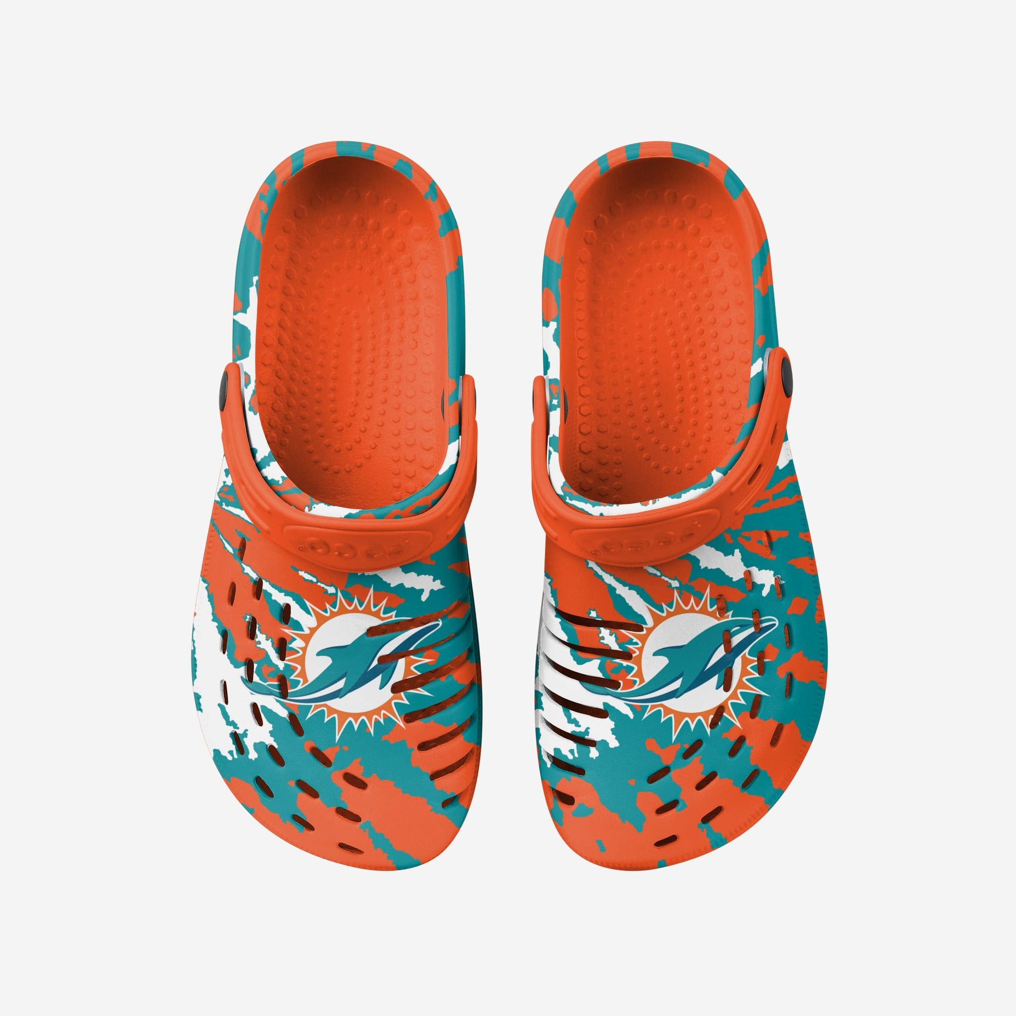 Enjoy a heaping helping of groovy goodness by standing out in these Miami Dolphins Tie-Dye Clogs with Straps.