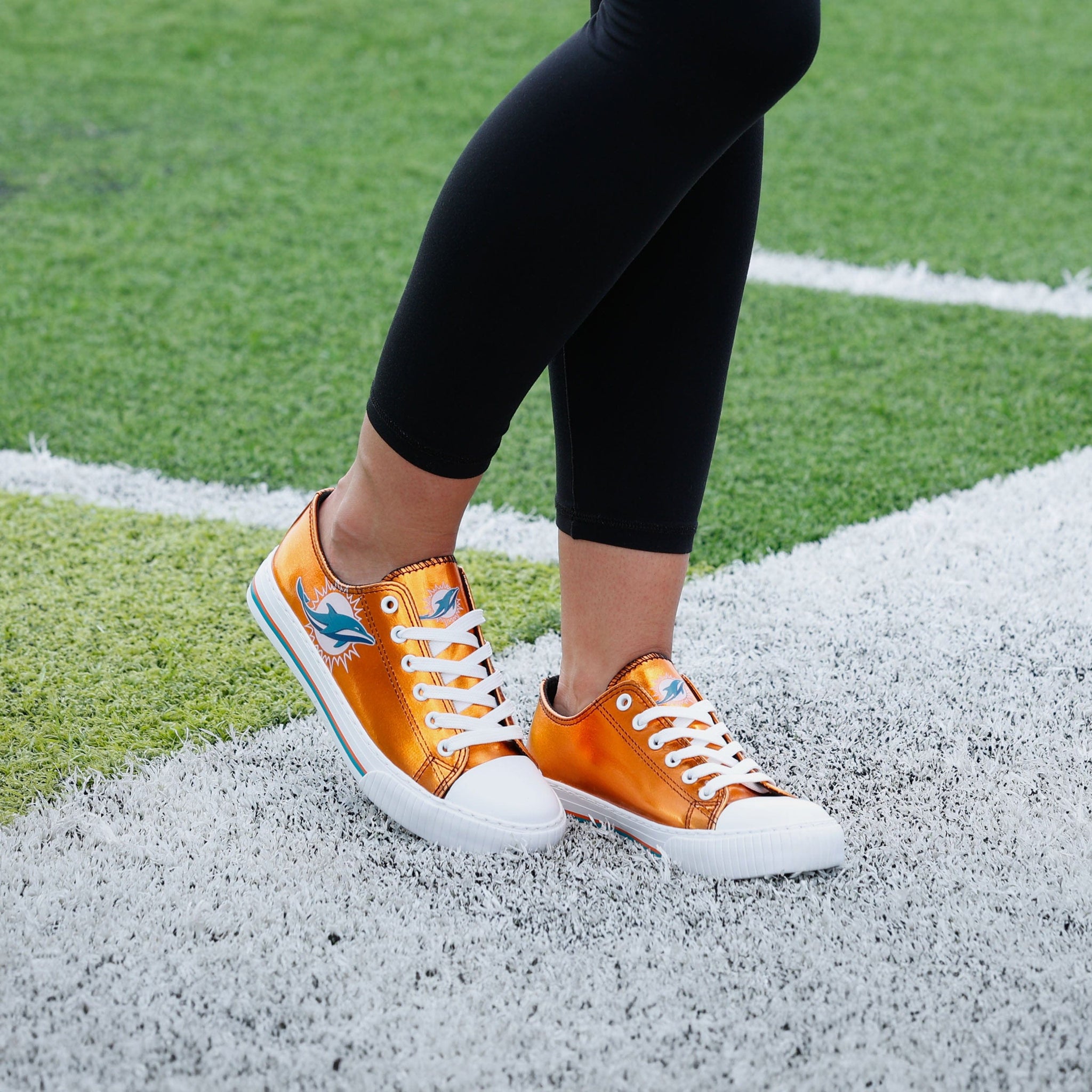 You’re the heart and “sole” of your fanbase, there's no doubt about that. Now, get ready to prove it to everyone at the tailgate or the game with a pair of Miami Dolphins Women's Metallic Canvas Sneakers on your feet.