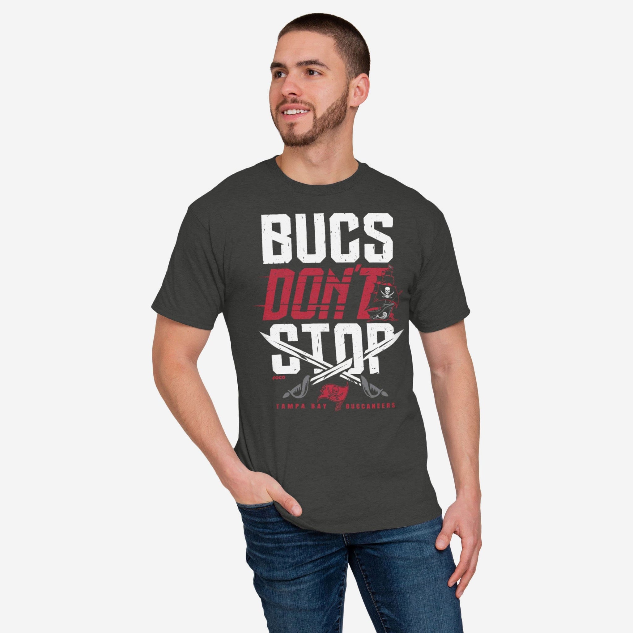 Ahoy maties! Set sail to victory by putting on this Tampa Bay Buccaneers Bucs Don't Stop T-Shirt!