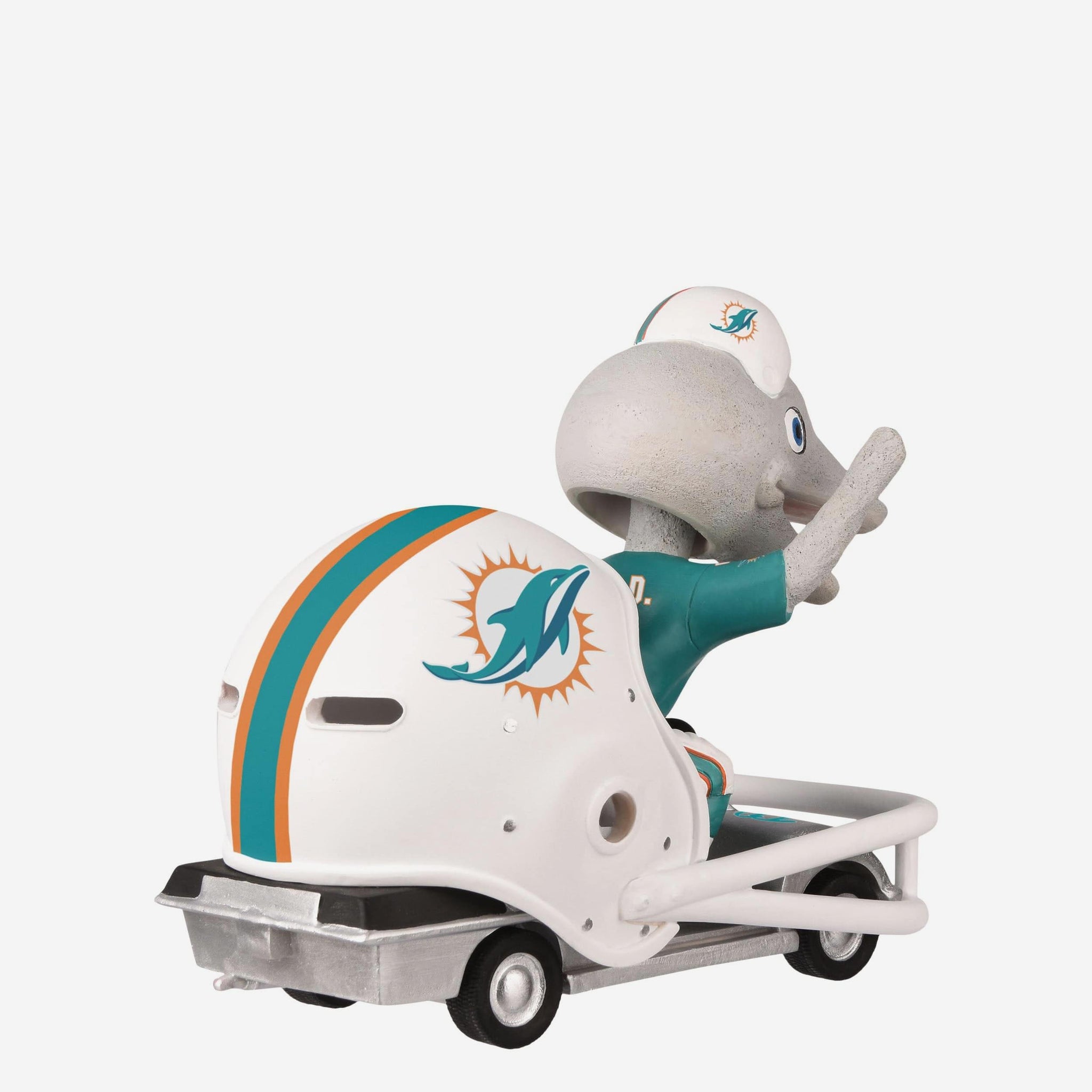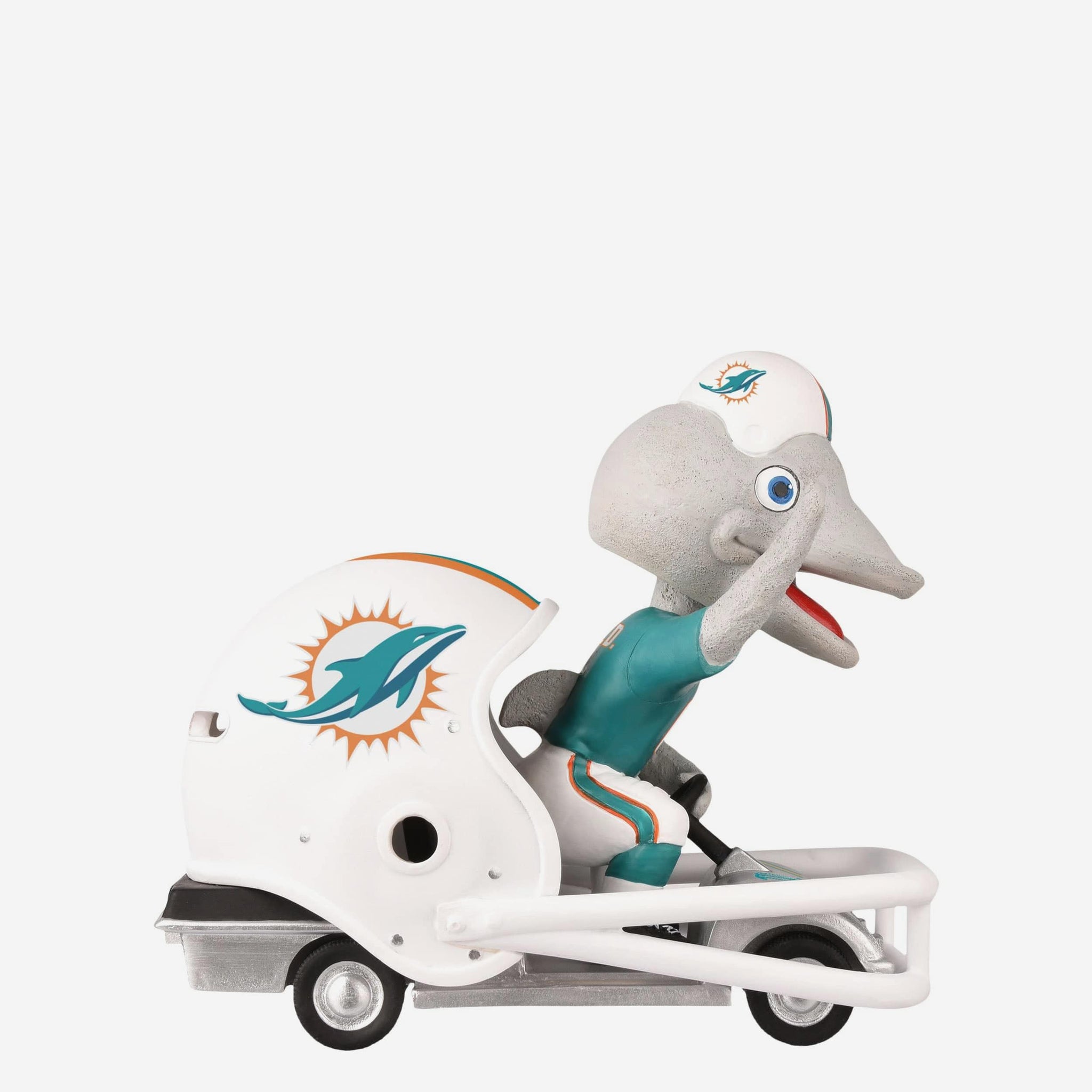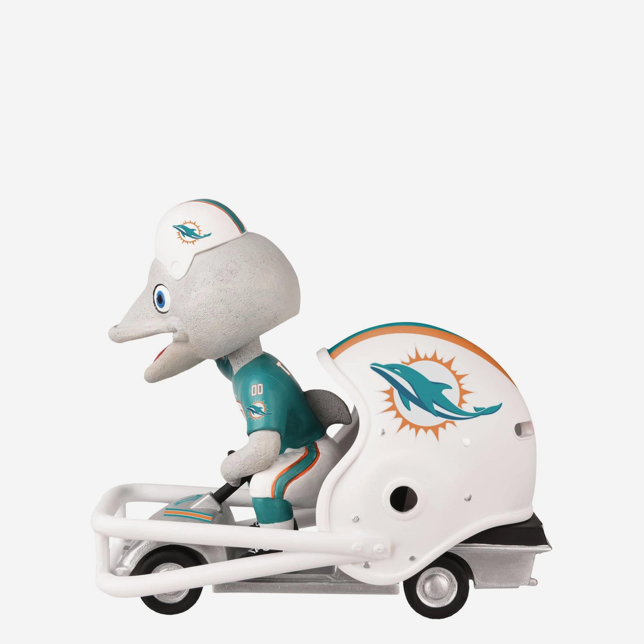 Ready, set, bobble! The T.D. Miami Dolphins Helmet Cart Mascot Bobblehead is here to drive your fandom straight into the end zone.