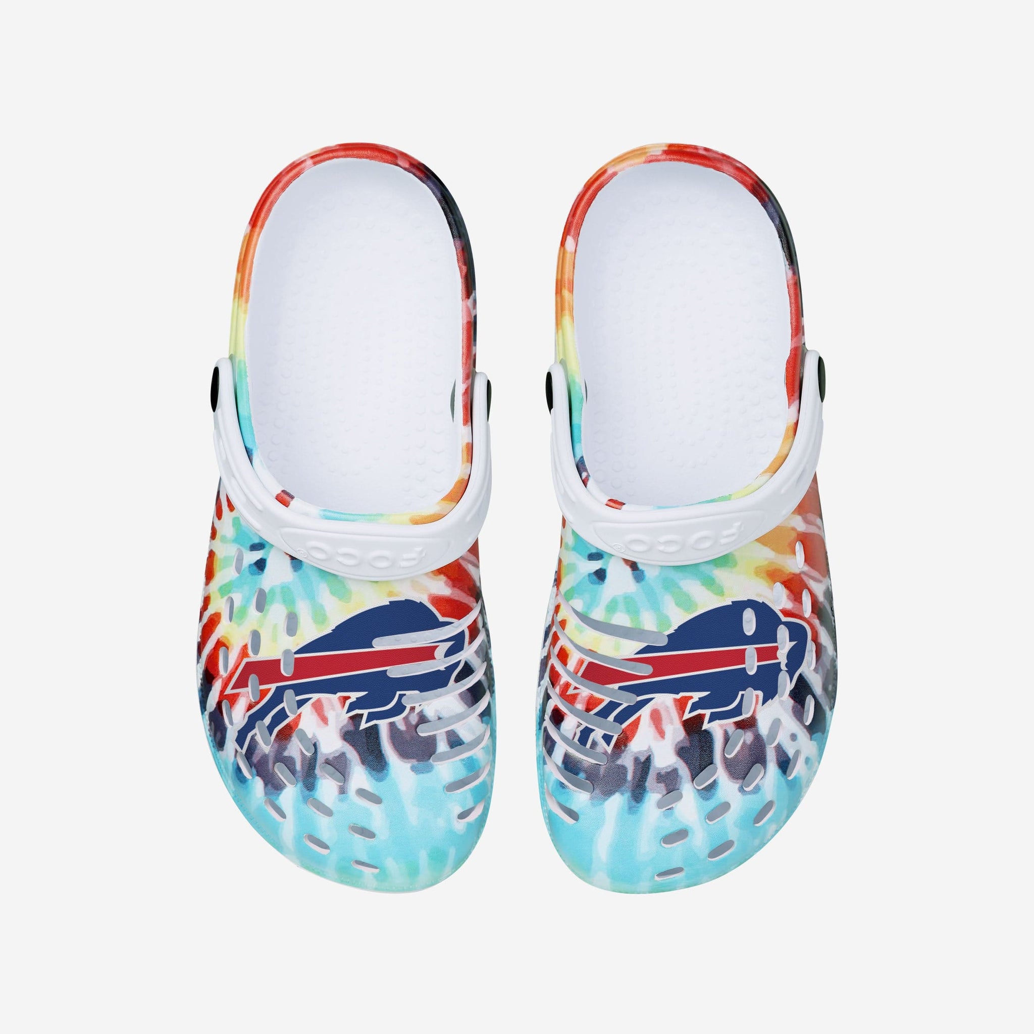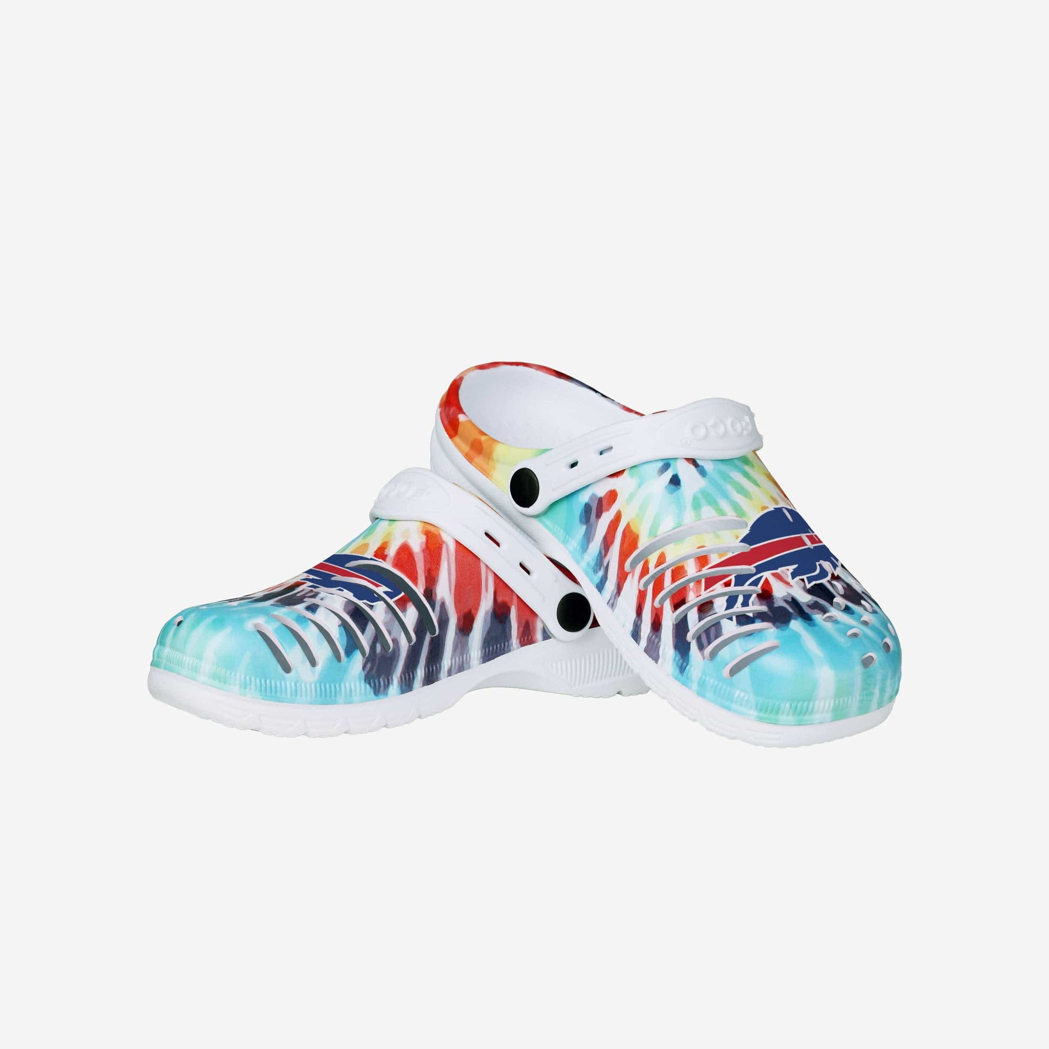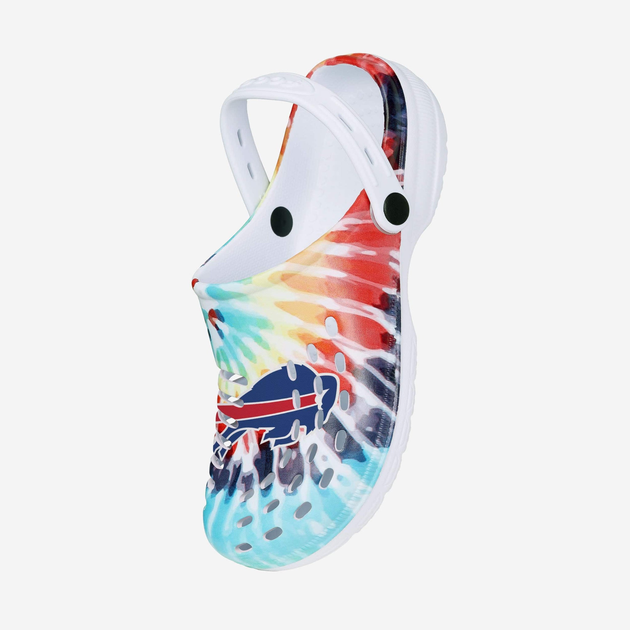 Peace. Love. Tie-dye. Step back in time with some style from yesteryear by rocking these Buffalo Bills Women's Tie-Dye Clogs with Straps.