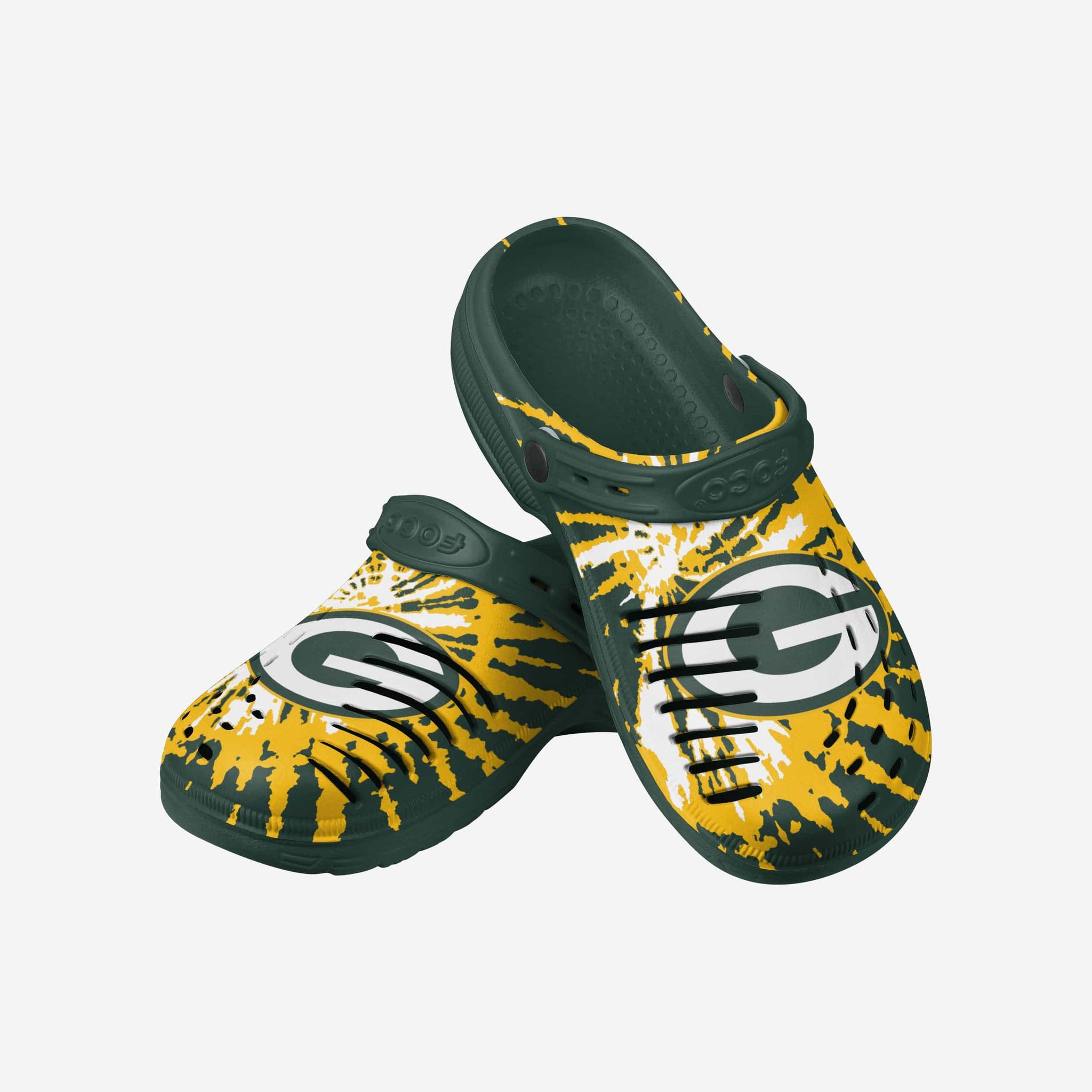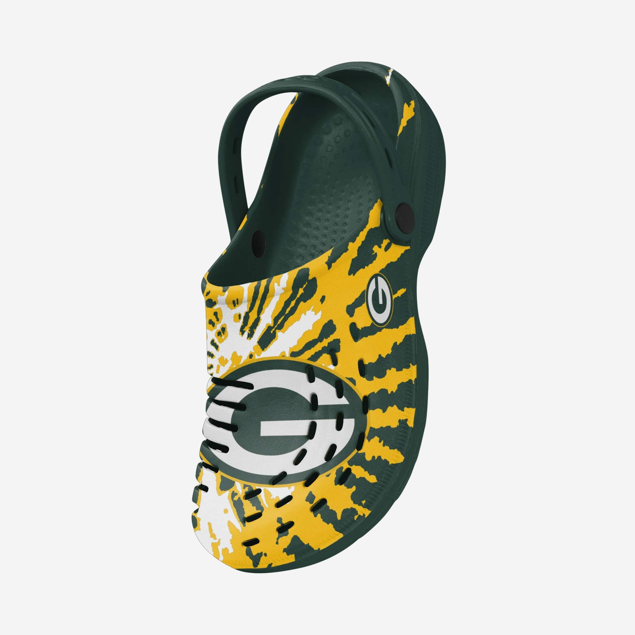 Enjoy a heaping helping of groovy goodness by standing out in these Green Bay Packers Tie-Dye Clogs with Straps.
