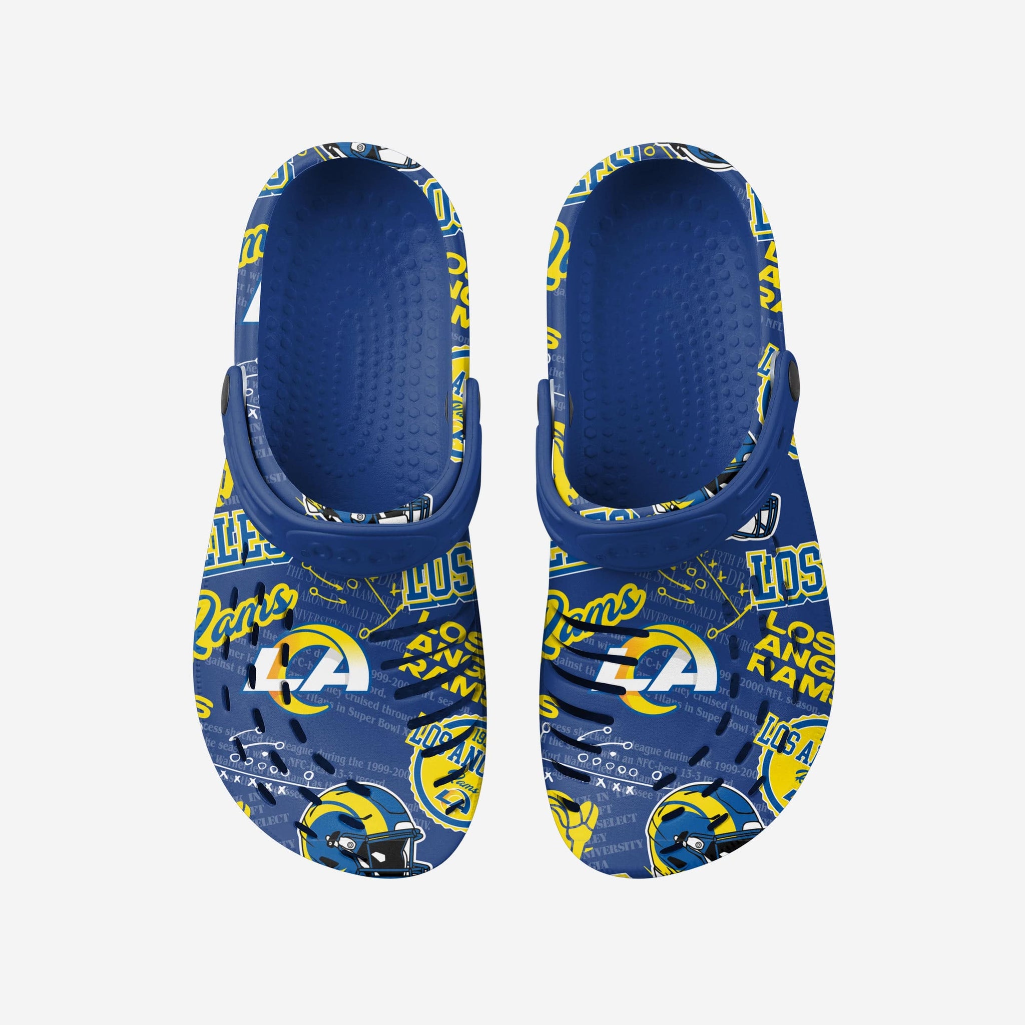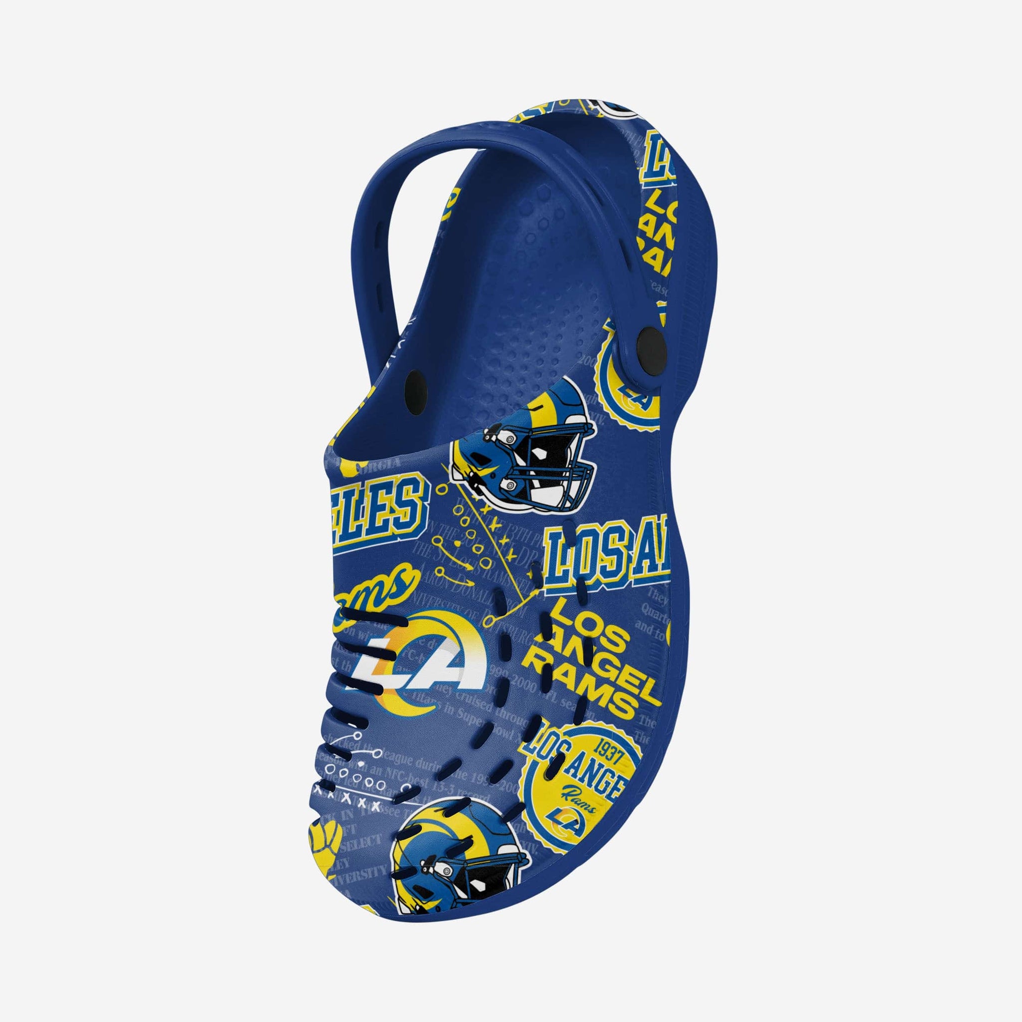 The Los Angeles Rams Historic Print Clogs with Straps are here to help you take a step into the time machine and celebrate your franchise's glorious history.