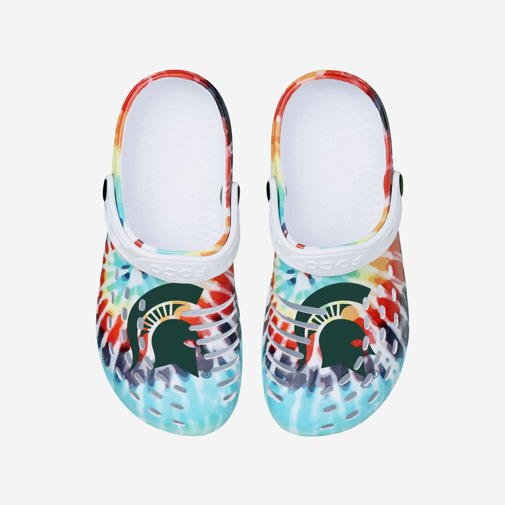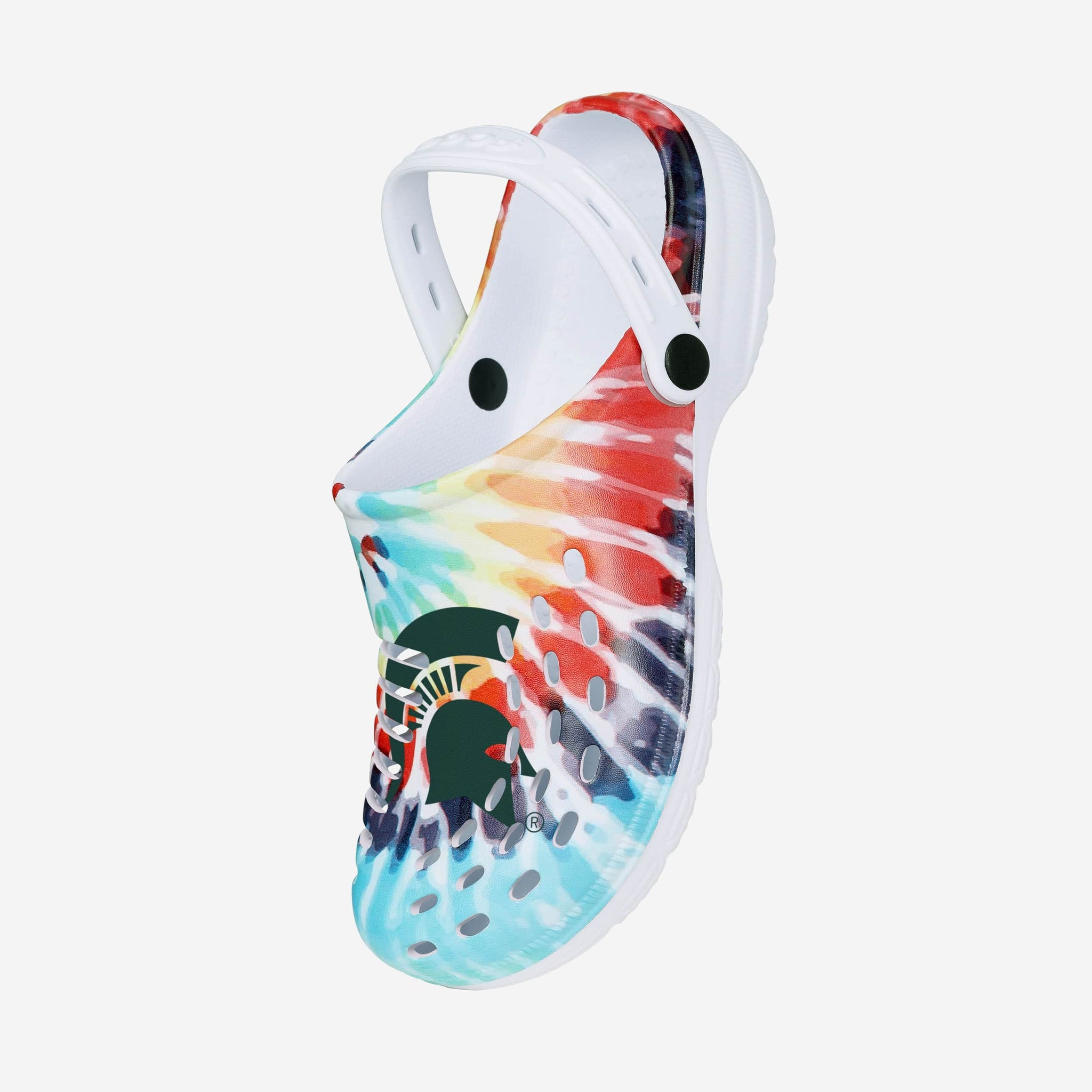 Peace. Love. Tie-dye. Step back in time with some style from yesteryear by rocking these Michigan State Spartans Women's Tie-Dye Clogs with Straps.