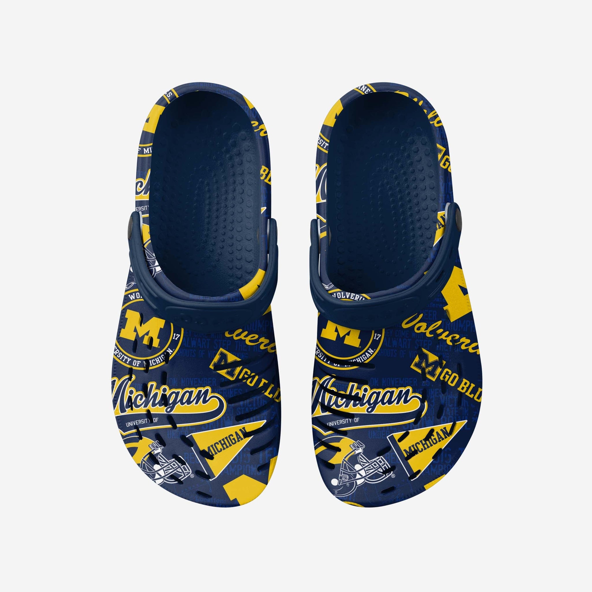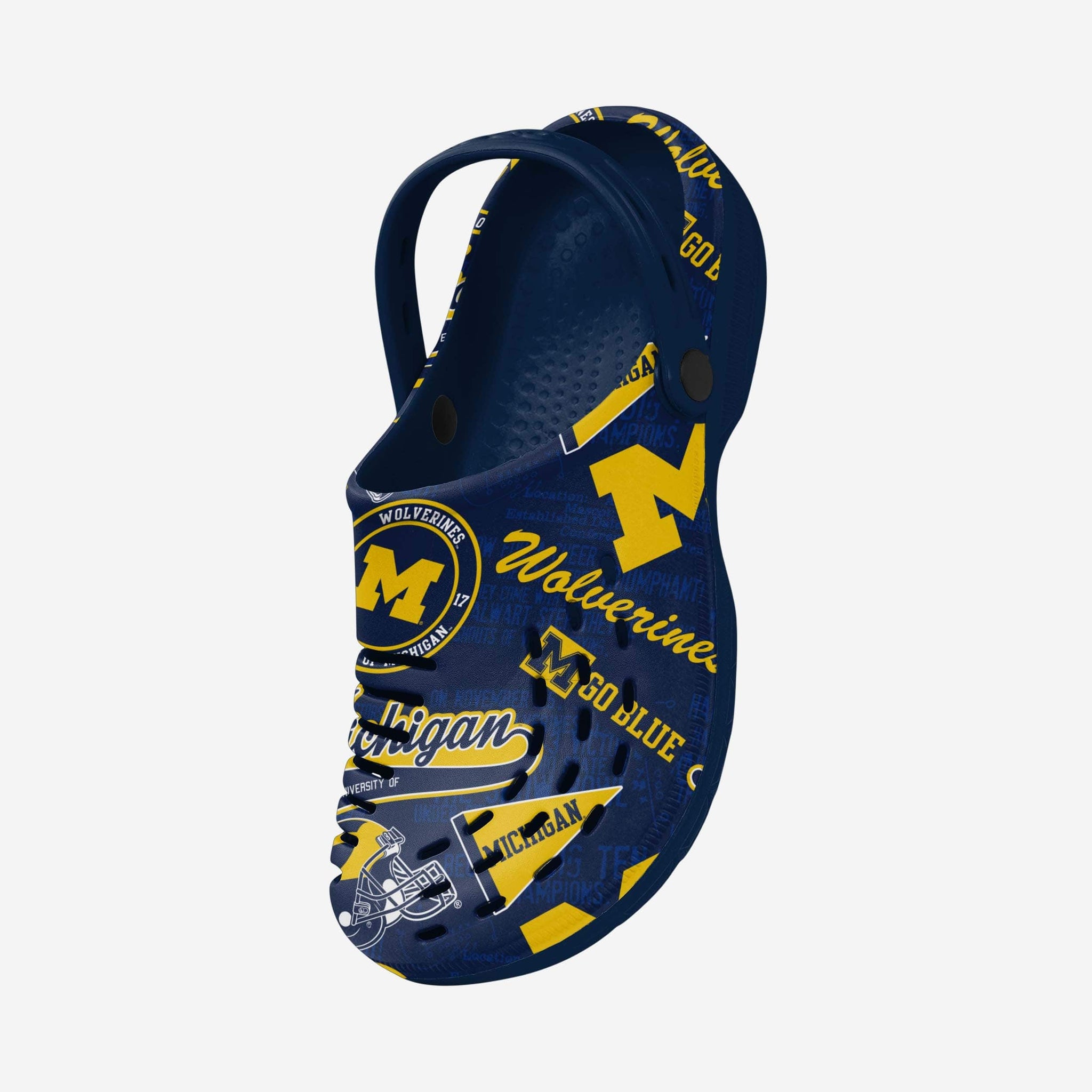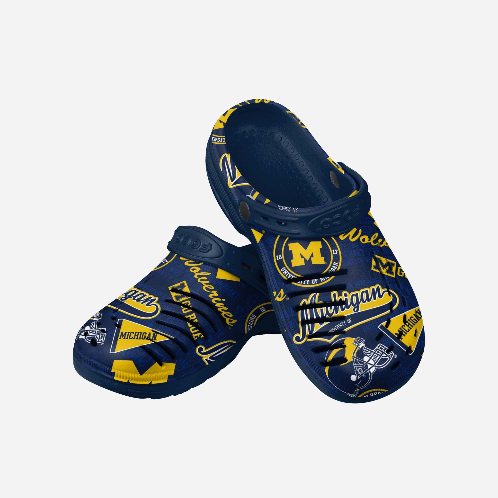 The Michigan Wolverines Historic Print Clogs with Straps are here to help you take a step into the time machine and celebrate your franchise's glorious history.