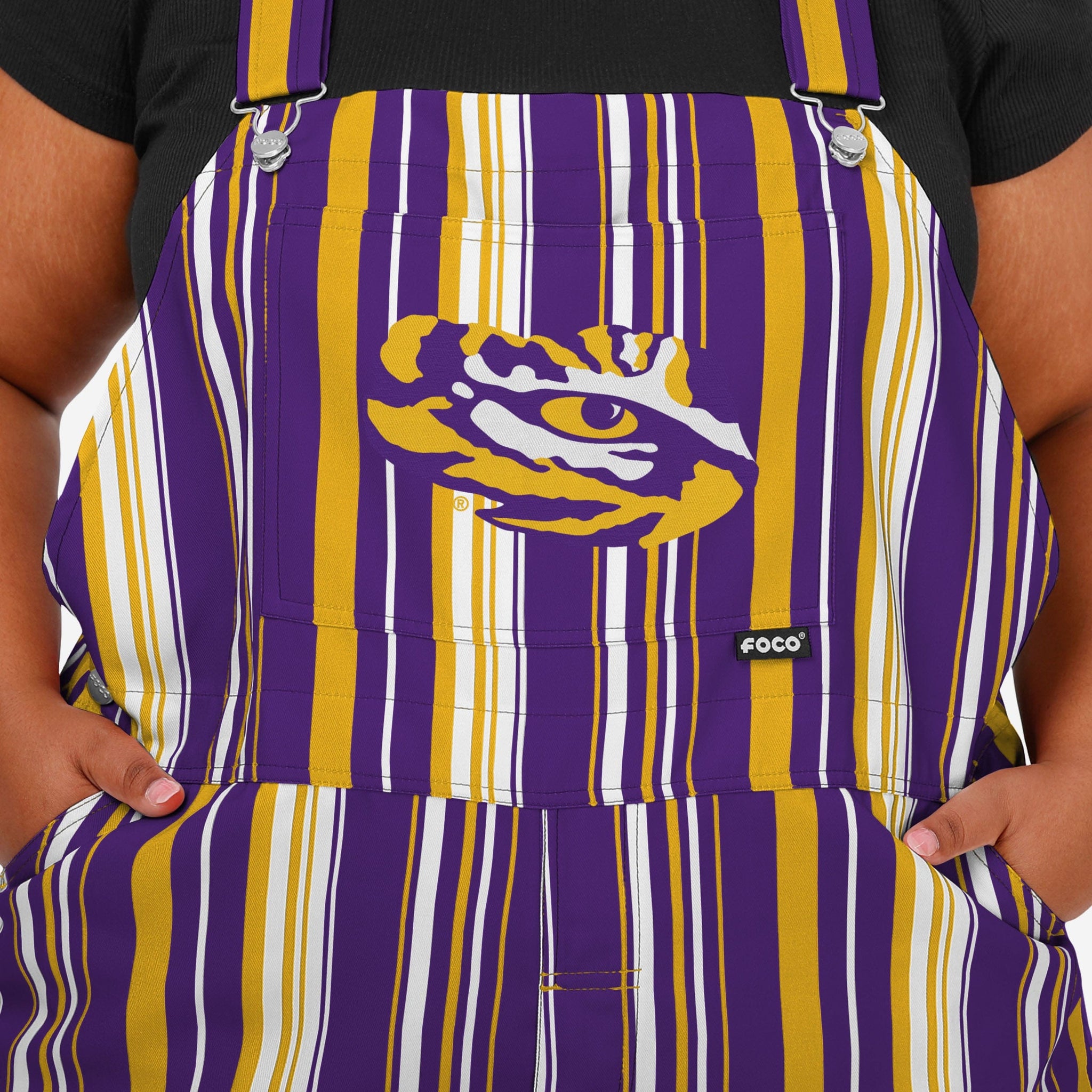 • All-over team-colored design: These overalls are covered in the official LSU Tigers colors, so you can show your team spirit with pride.