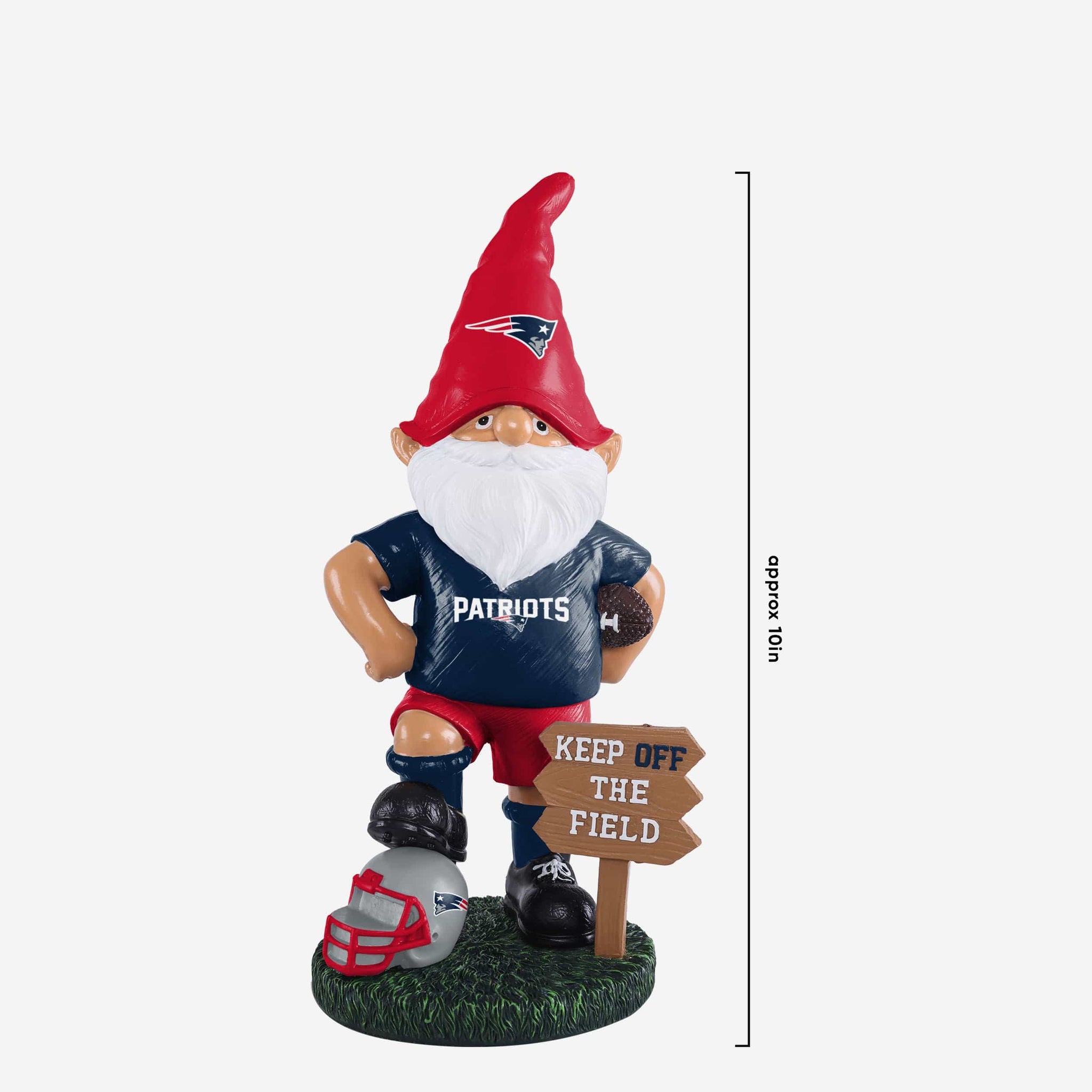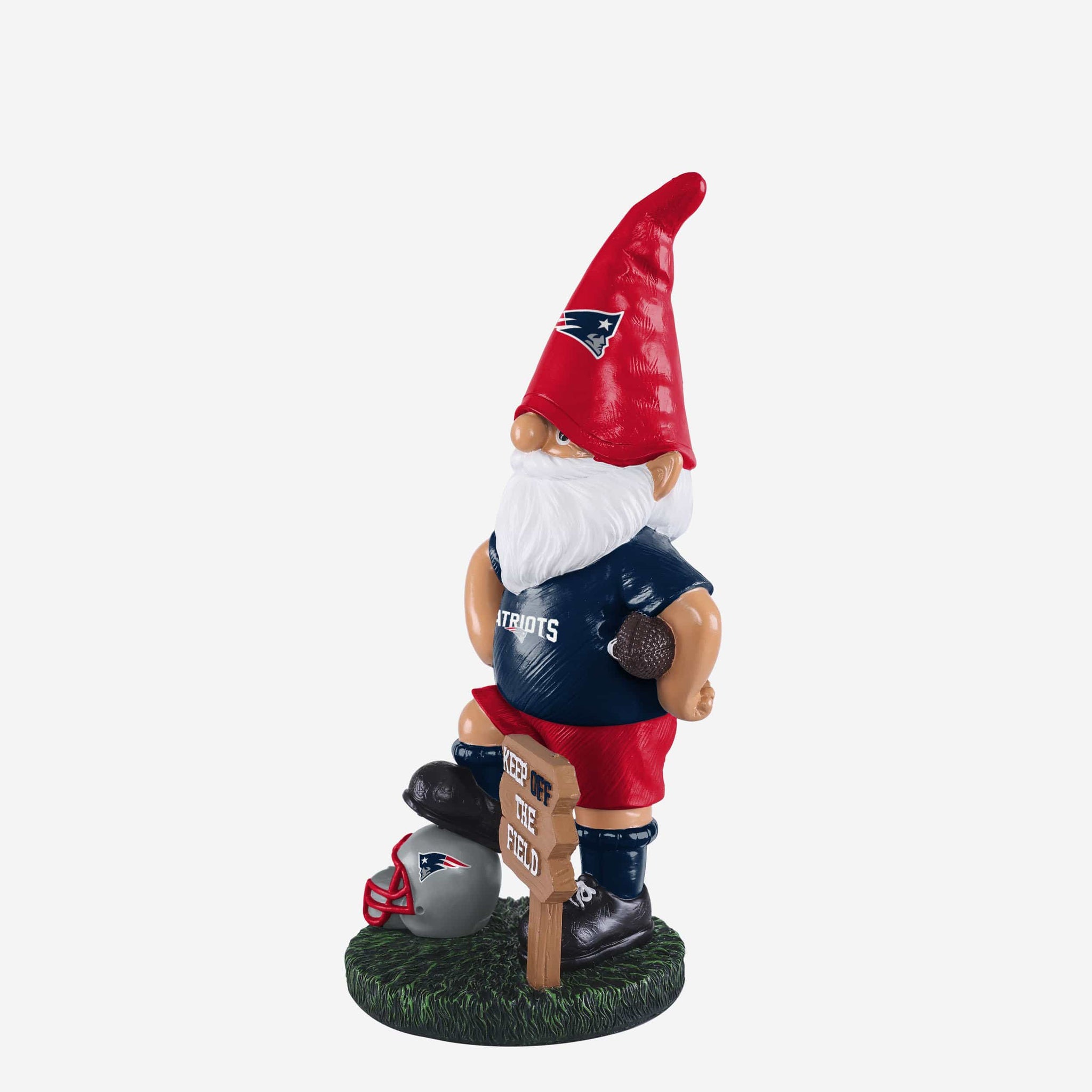 Your lawn means a lot to you. Make sure it's free of rival team fans by fending them off with this New England Patriots Keep Off the Field Gnome!