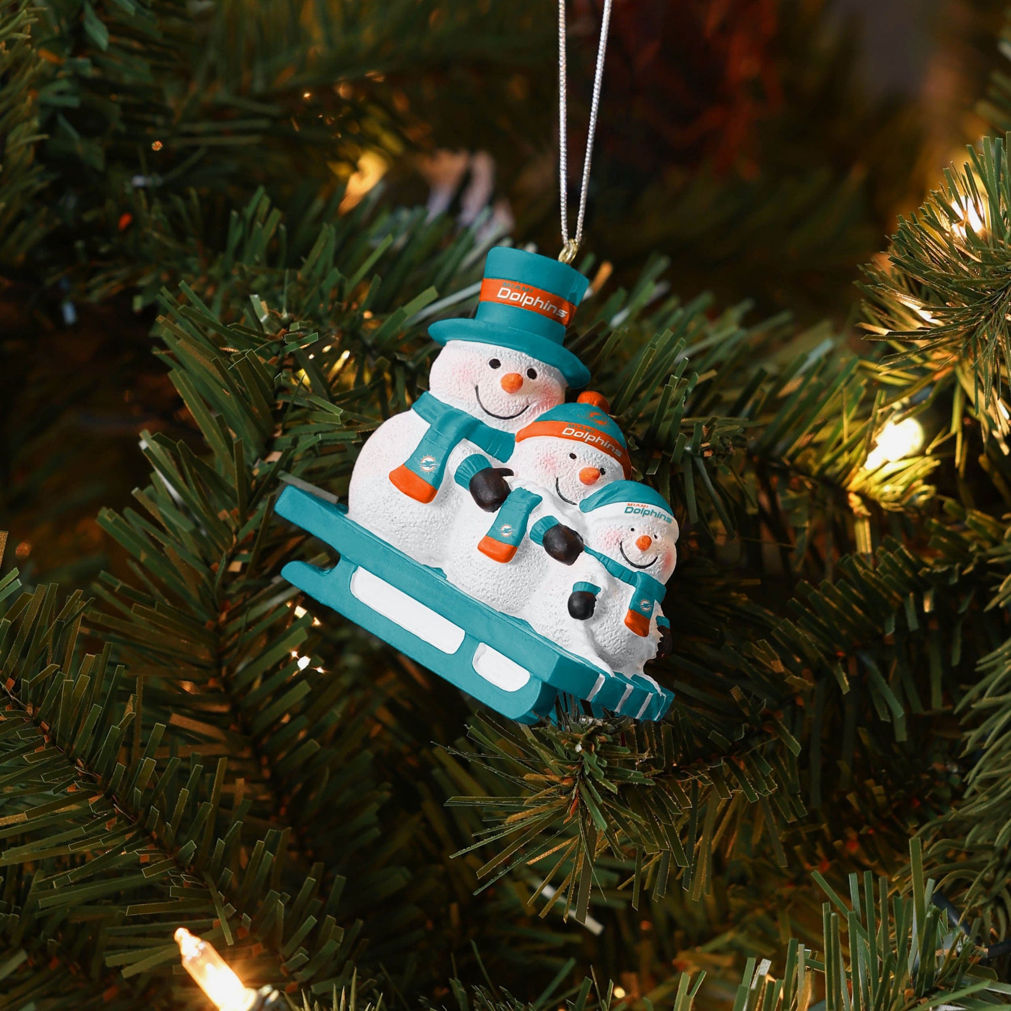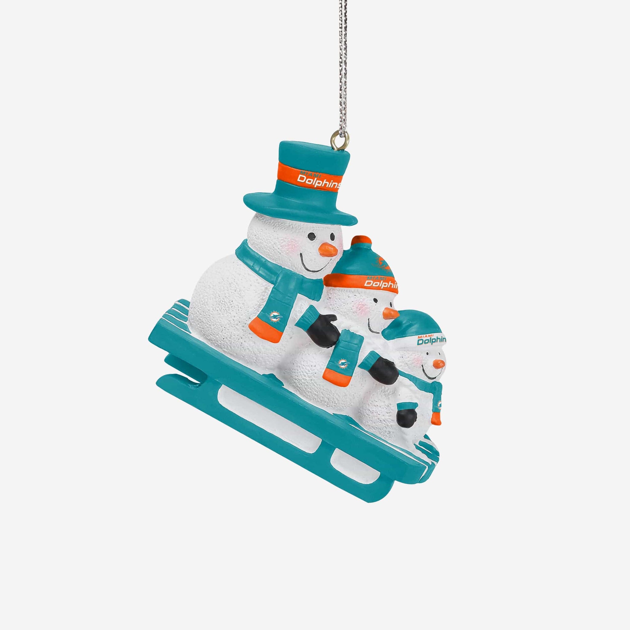 Meet three snowman friends that won't melt when you bring them inside! Introducing the Miami Dolphins Sledding Snowmen Ornament!