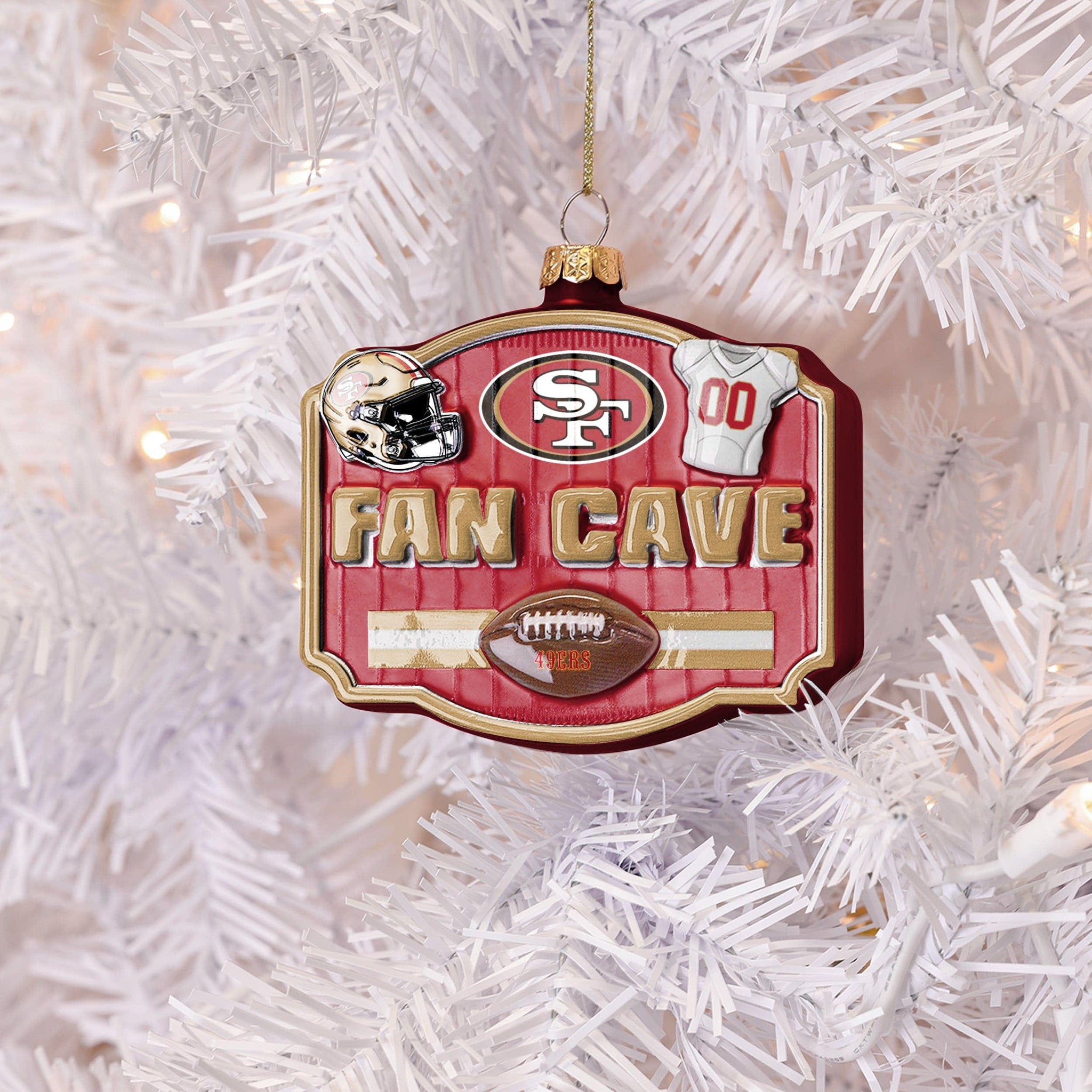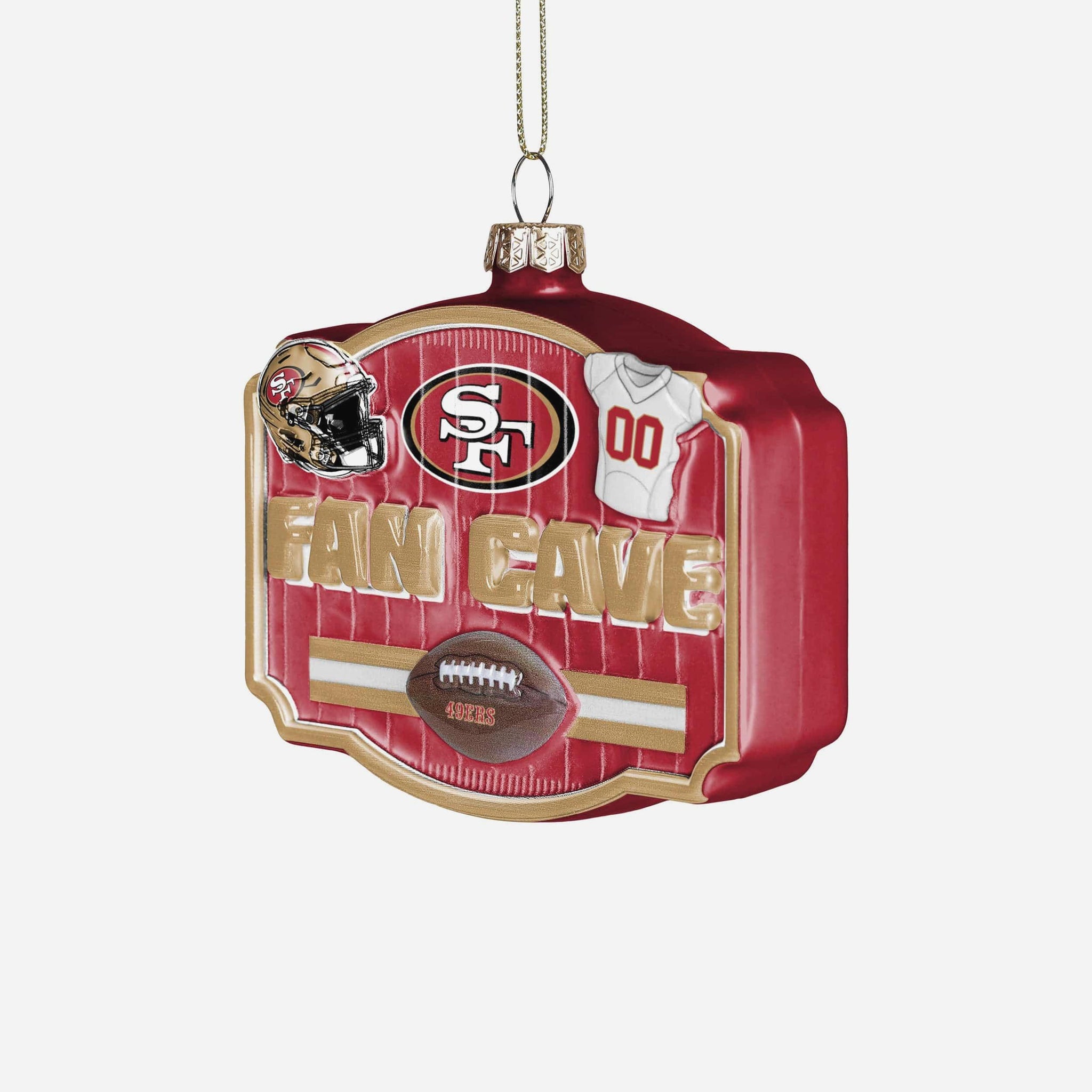 Celebrate the most wonderful time of the year with the ultimate fan flair! From kickoff to Christmas morning, this San Francisco 49ers Blown Glass Fan Cave Ornament scores big with team logos, helmets, and jersey details in a premium blown glass finish.