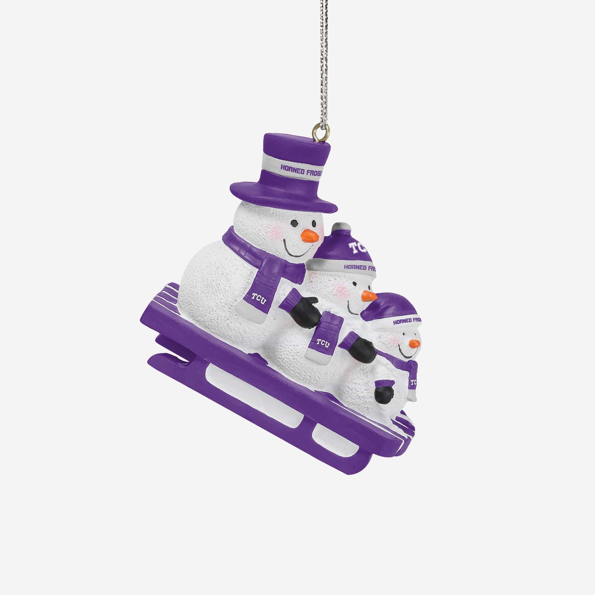 Meet three snowman friends that won't melt when you bring them inside! Introducing the TCU Horned Frogs Sledding Snowmen Ornament!
