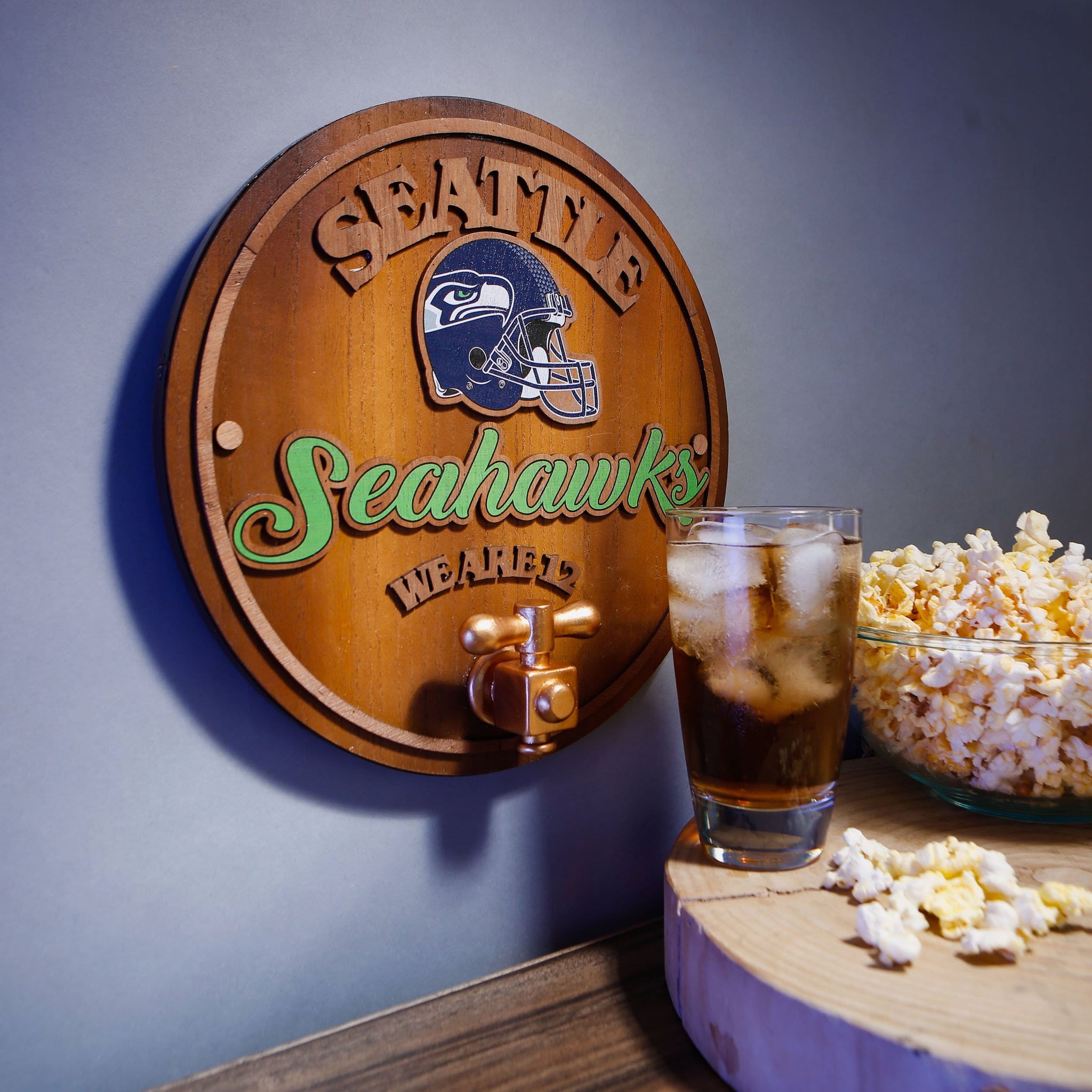 Who needs a crowded sports bar when you and your friends can just watch the game in the fancave with this Seattle Seahawks Keg Tap Sign on display?