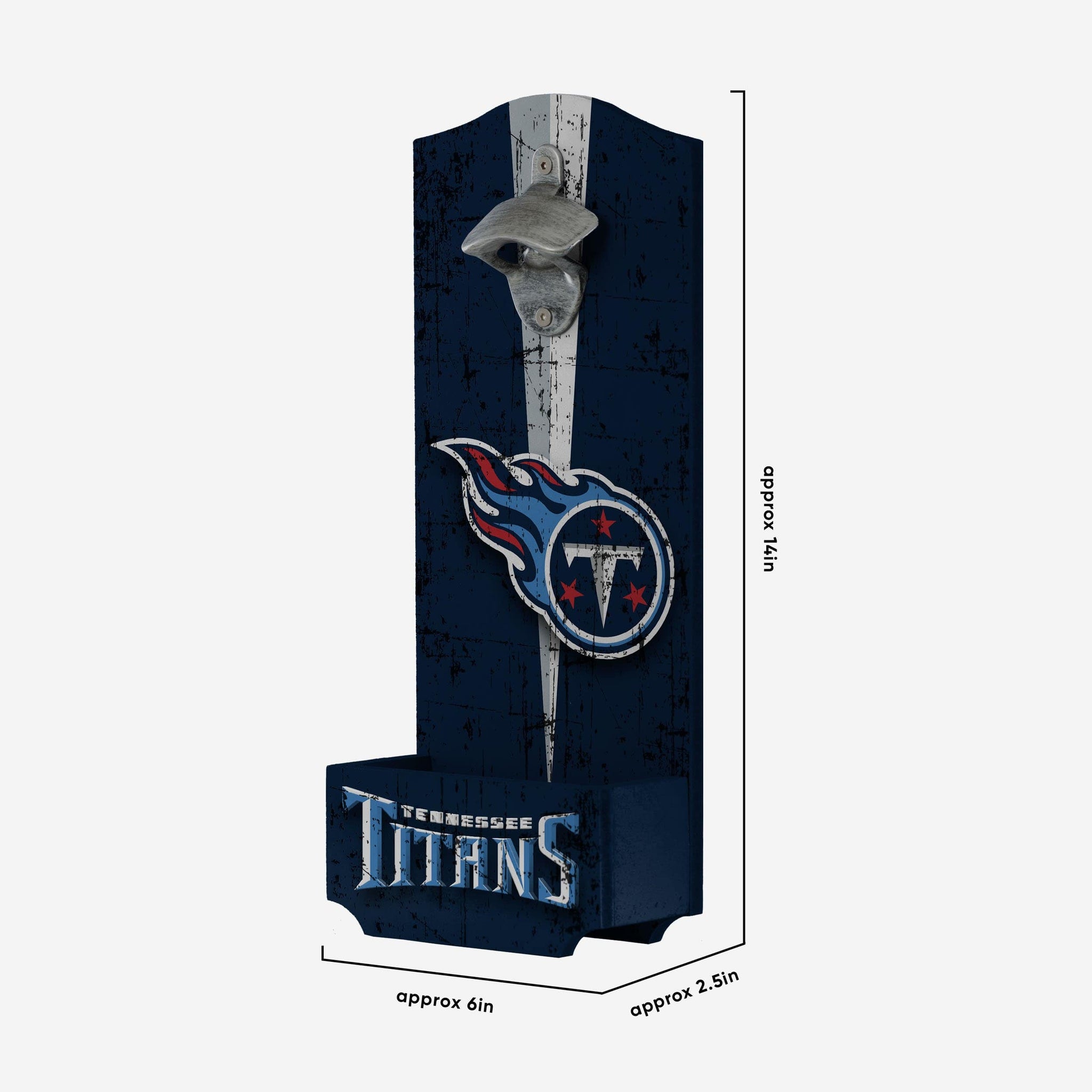 Don't miss a second of the action on gameday. Just use this Tennessee Titans Wooden Bottle Cap Opener Sign to crack open another cold one and focus on watching your team dominate!