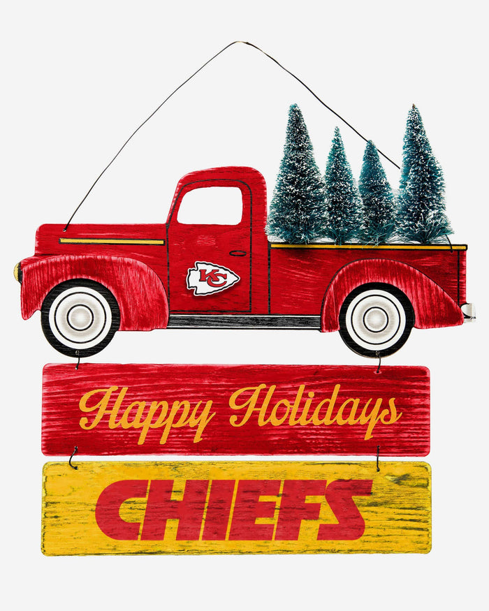 Make sure you've got the most festive fancave around this season by hanging up this Kansas City Chiefs Wooden Truck with Tree Sign. It's perfect if you're having friends over to watch the game, or family over for the annual holiday party.