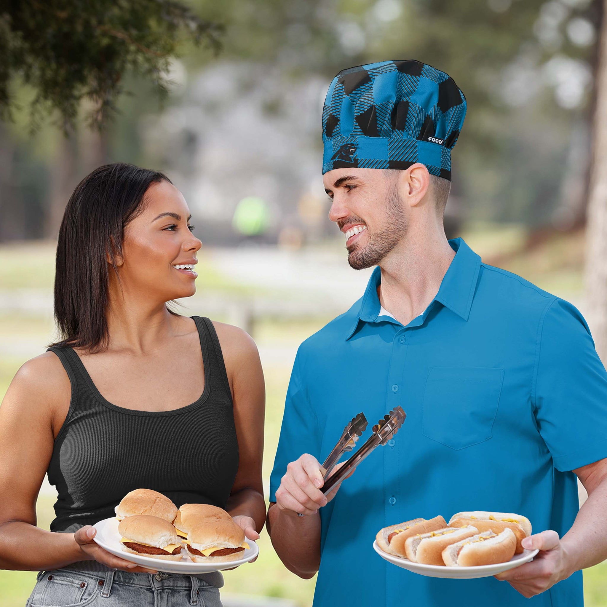 Carolina Panthers Plaid Chef Hat FOCO - FOCO.com