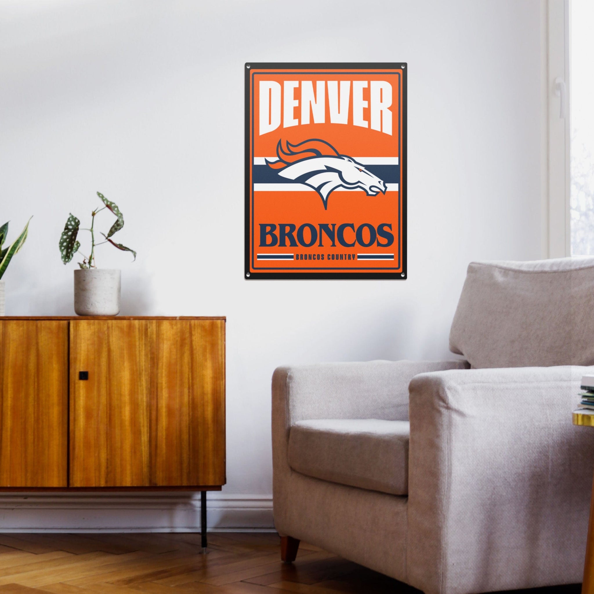 This is a sign. Literally! This is a sign to show off your team spirit from the comfort of your fancave with this Denver Broncos Metal Tacker Wall Sign.