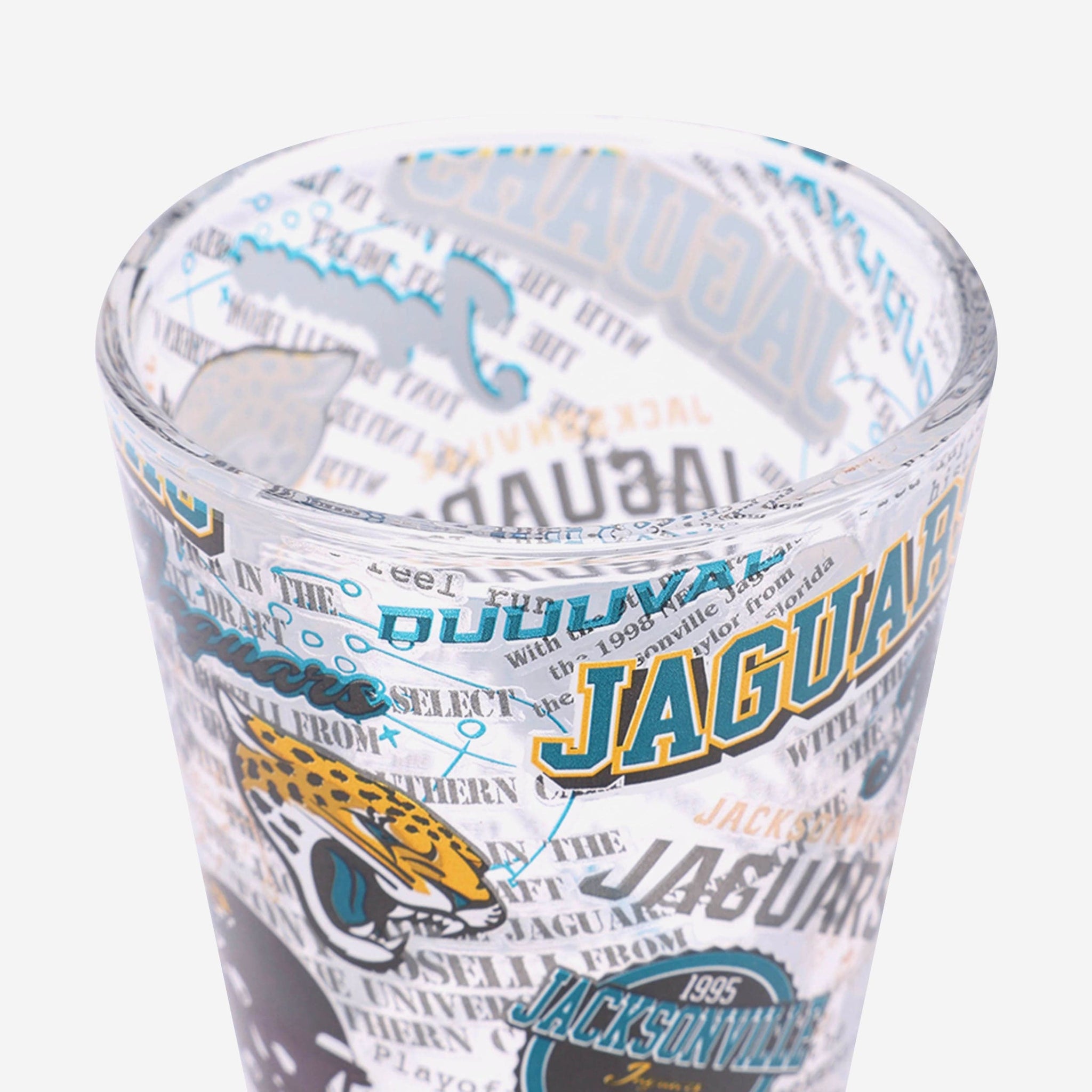 - Third glass features all-over repeat design with team logo displays and thematic team-specific elements throughout that will really get the party started
