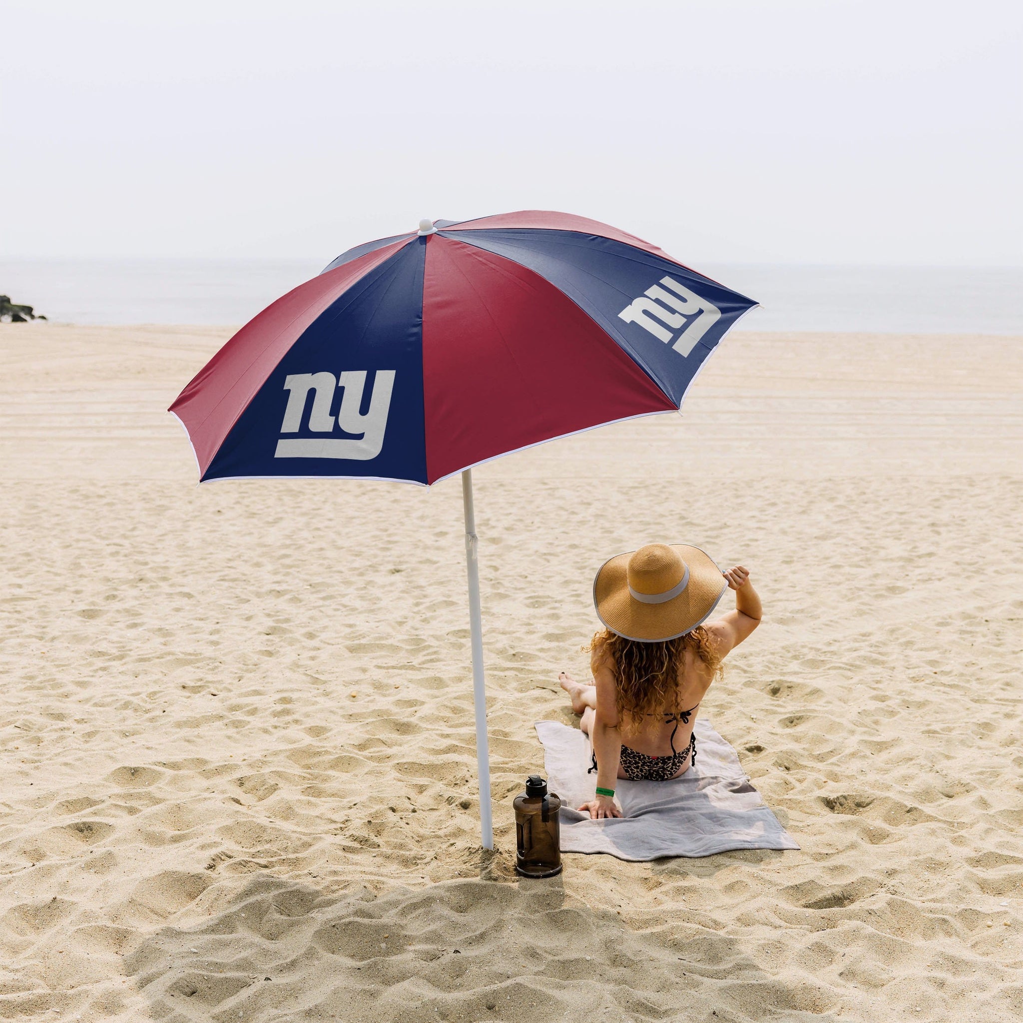 Beating the heat with this New York Giants Beach Umbrella is a rare example of when throwing shade is actually a GOOD thing!