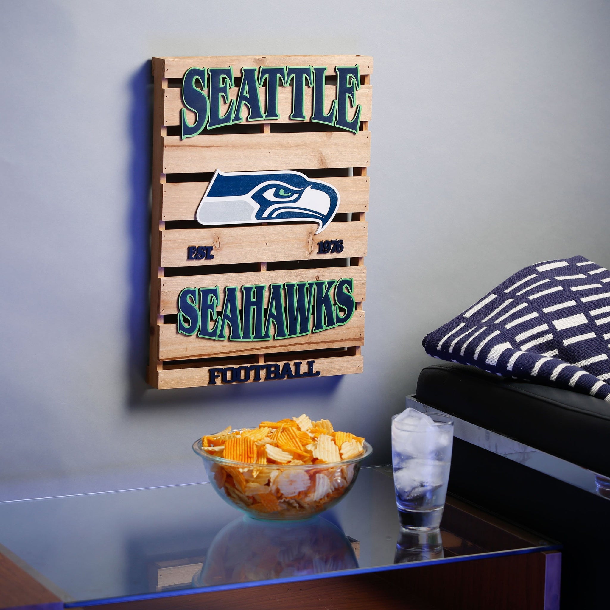 This is a sign - literally - that your fancave needs a little more team spirit before your friends come by for gameday. Make a statement with this Seattle Seahawks Wood Pallet Sign!
