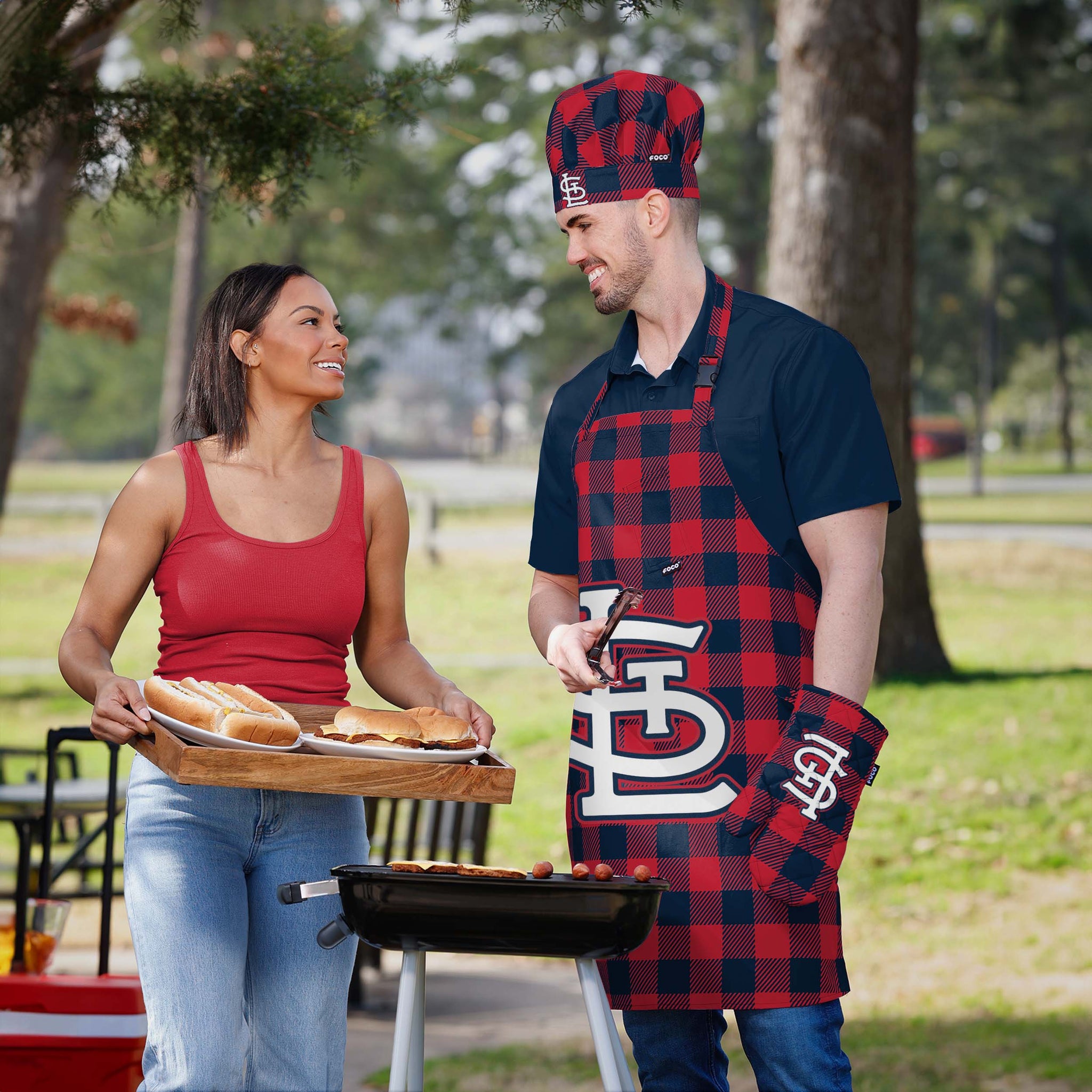 Get ready to serve up the best food in the greatest fan fit. From the kitchen, to the table, to game day, do it all in style with the St Louis Cardinals Plaid Chef Set.