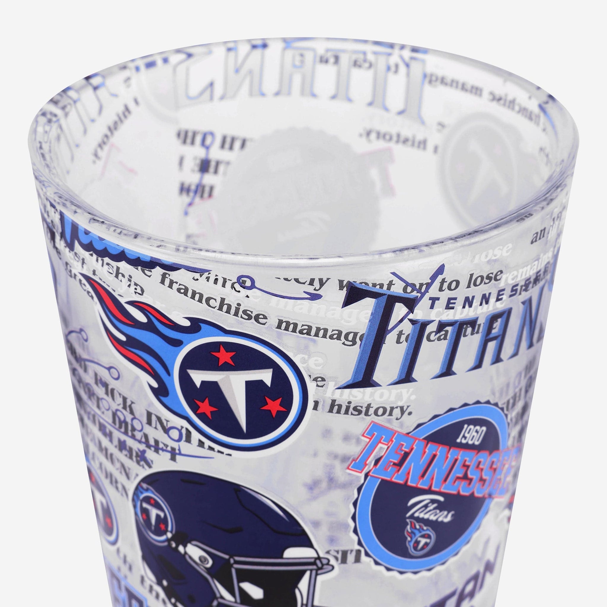 A blast from the past served in one fine pint. Introducing the Tennessee Titans Historic Print Pint Glass. Let's make history.