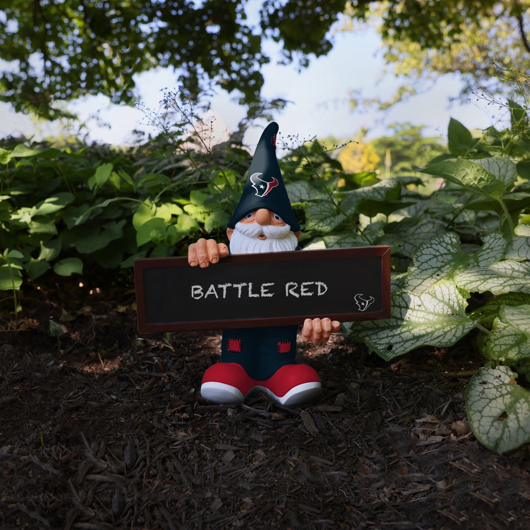 Chalk this one up as a victory! Make a statement and show off your epic team pride with this Houston Texans Chalkboard Sign Gnome!