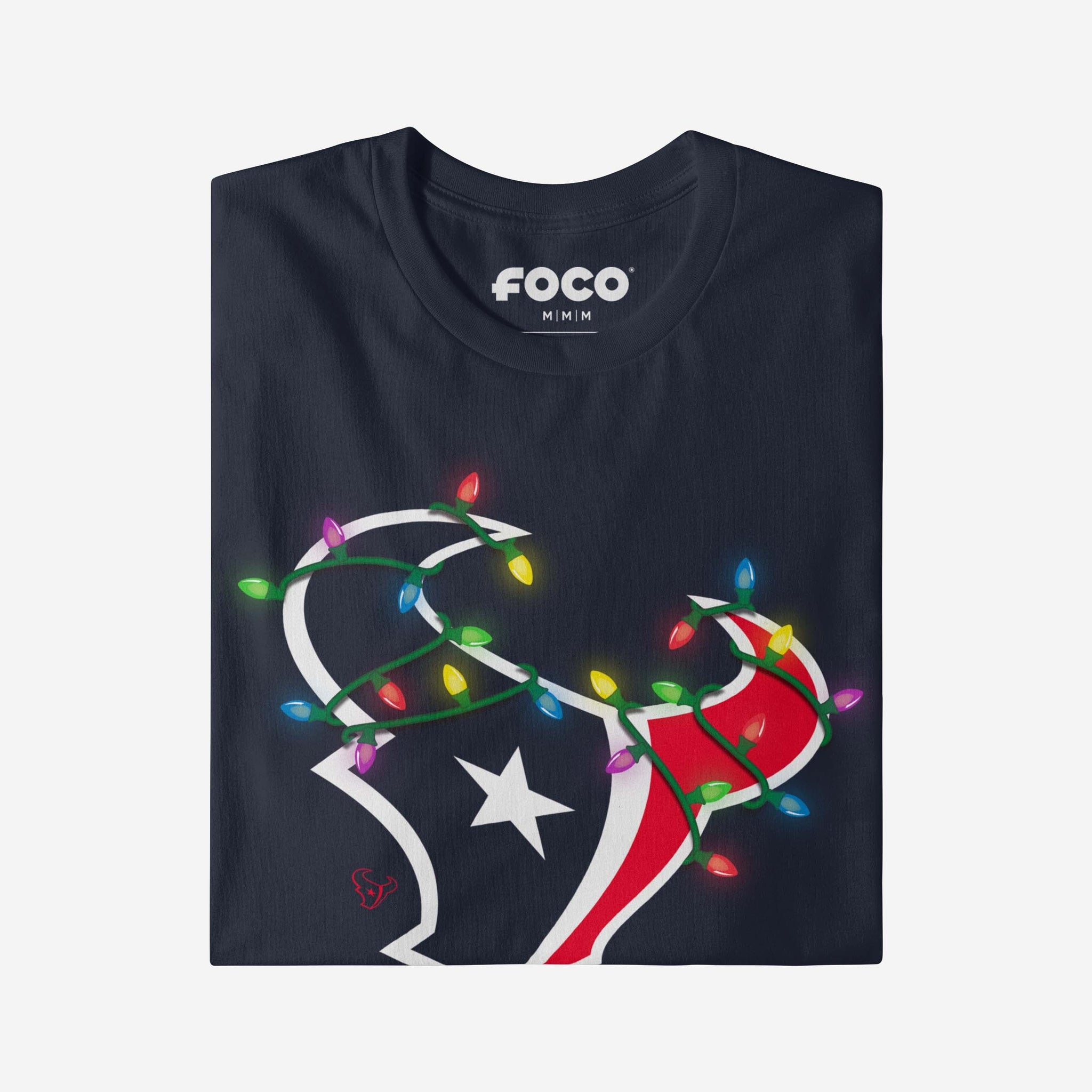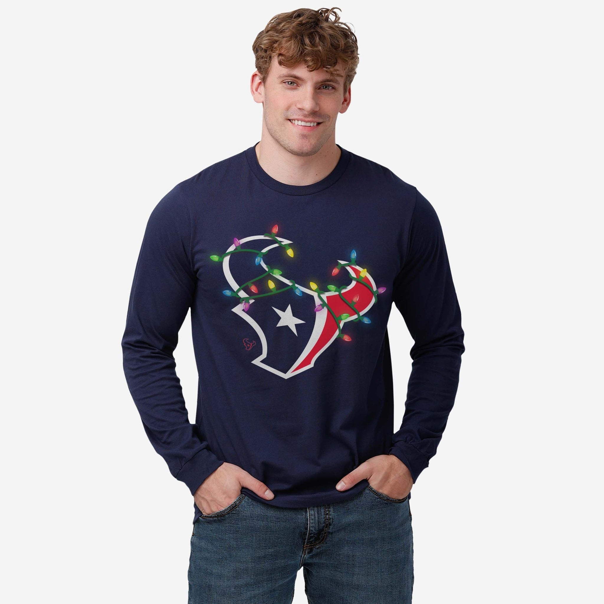 Houston Texans Primary Logo Holiday Lights Long Sleeve T-Shirt FOCO Navy S - FOCO.com